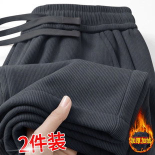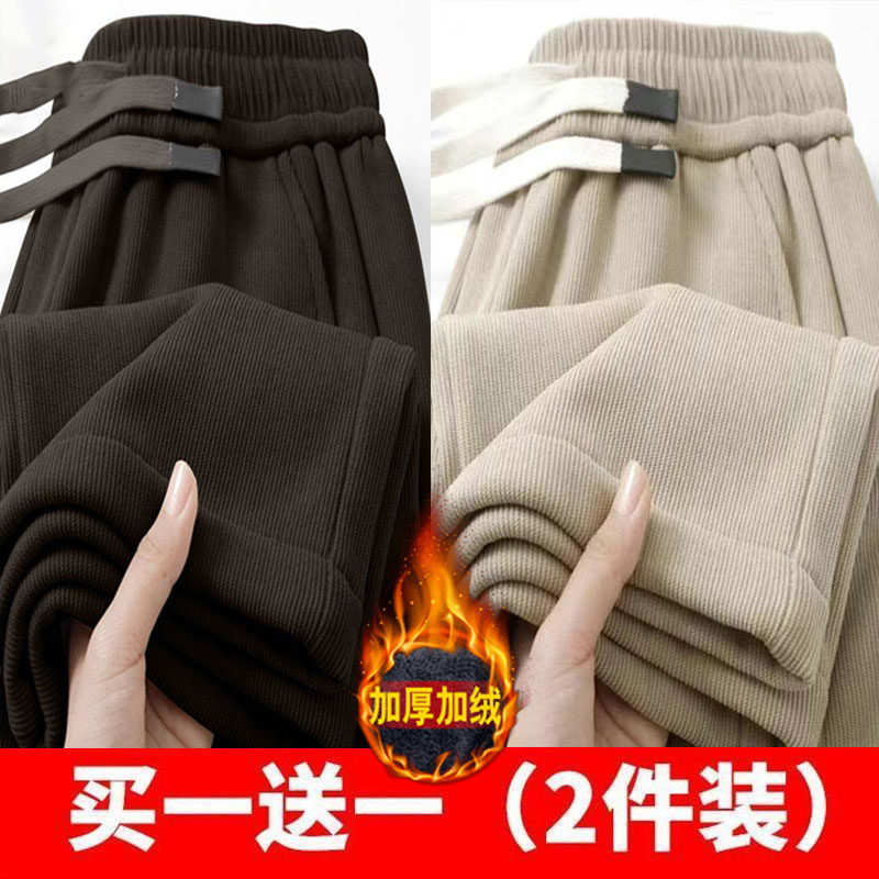 子男宽松休闲裤 秋冬重磅麦穗纹加绒直筒加厚裤 保暖卫裤 2025秋冬季