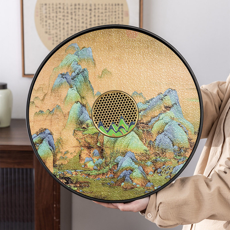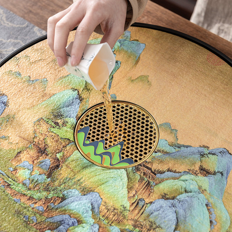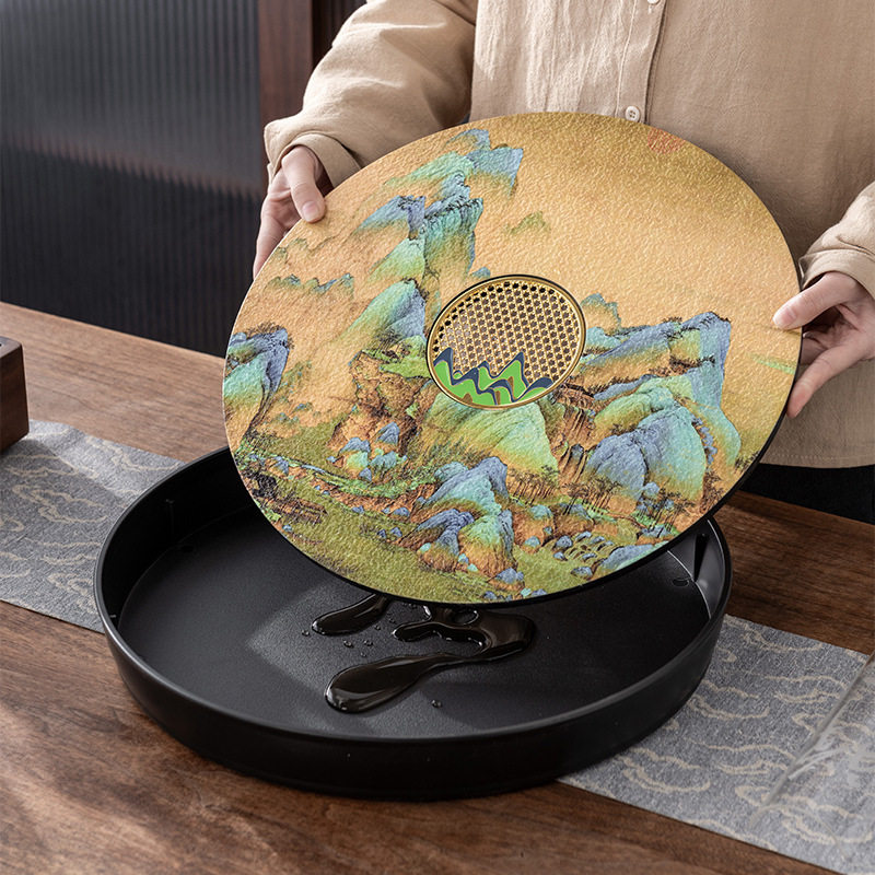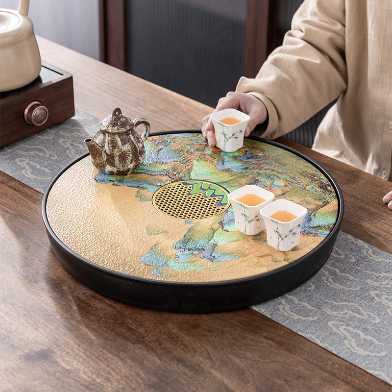 2025新款 千里江山圆形茶盘陶瓷家用小型干泡茶台轻奢现代功夫托盘
