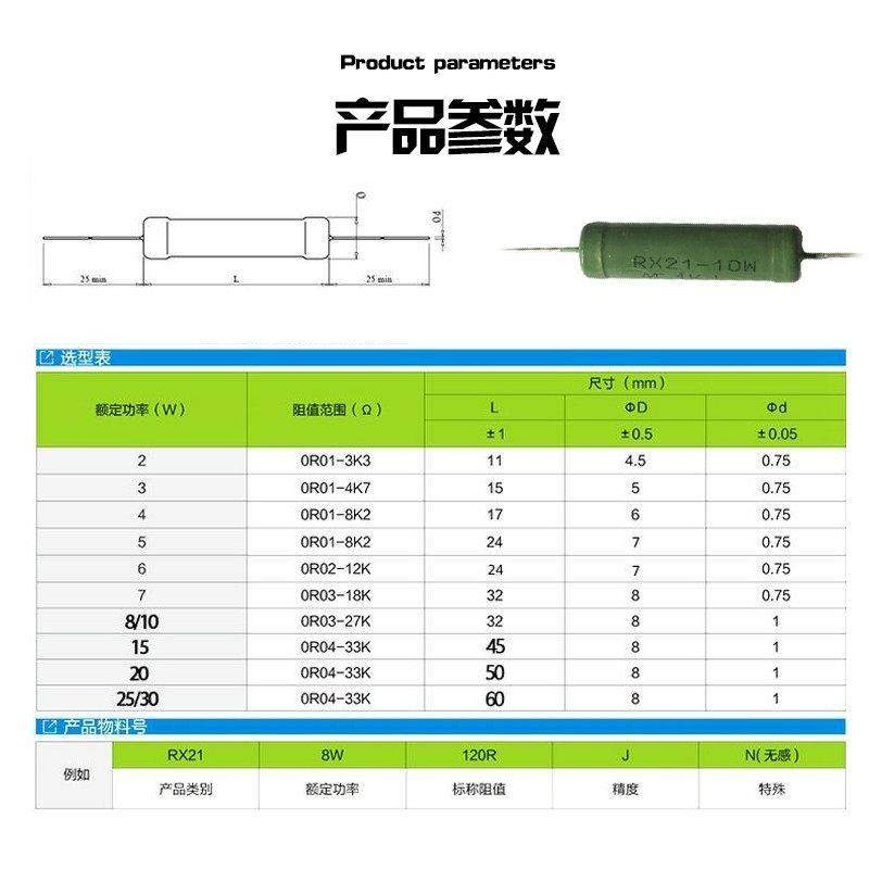 20R 10R 50R100R欧姆 RX21功率负载陶瓷水泥线绕电阻20W