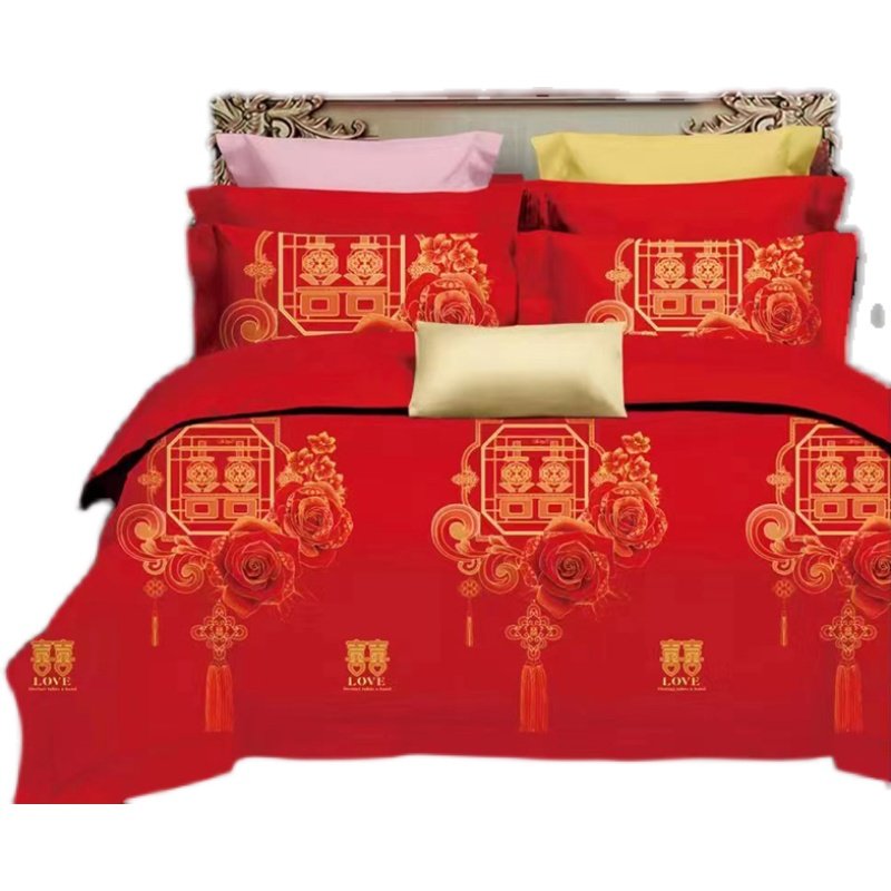 新婚庆四件套大红色全棉刺绣结婚房喜被套六八十件套纯棉床上用品