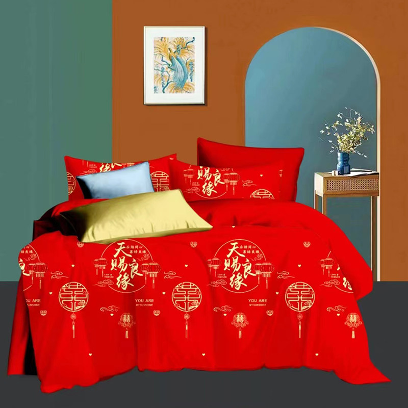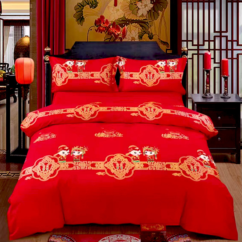 简约中式 红色婚庆四件套结婚纯棉喜庆陪嫁被套新婚礼床上用品备婚