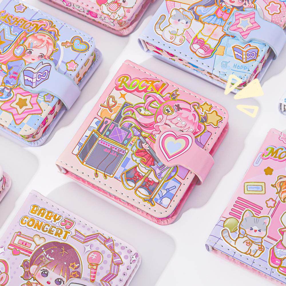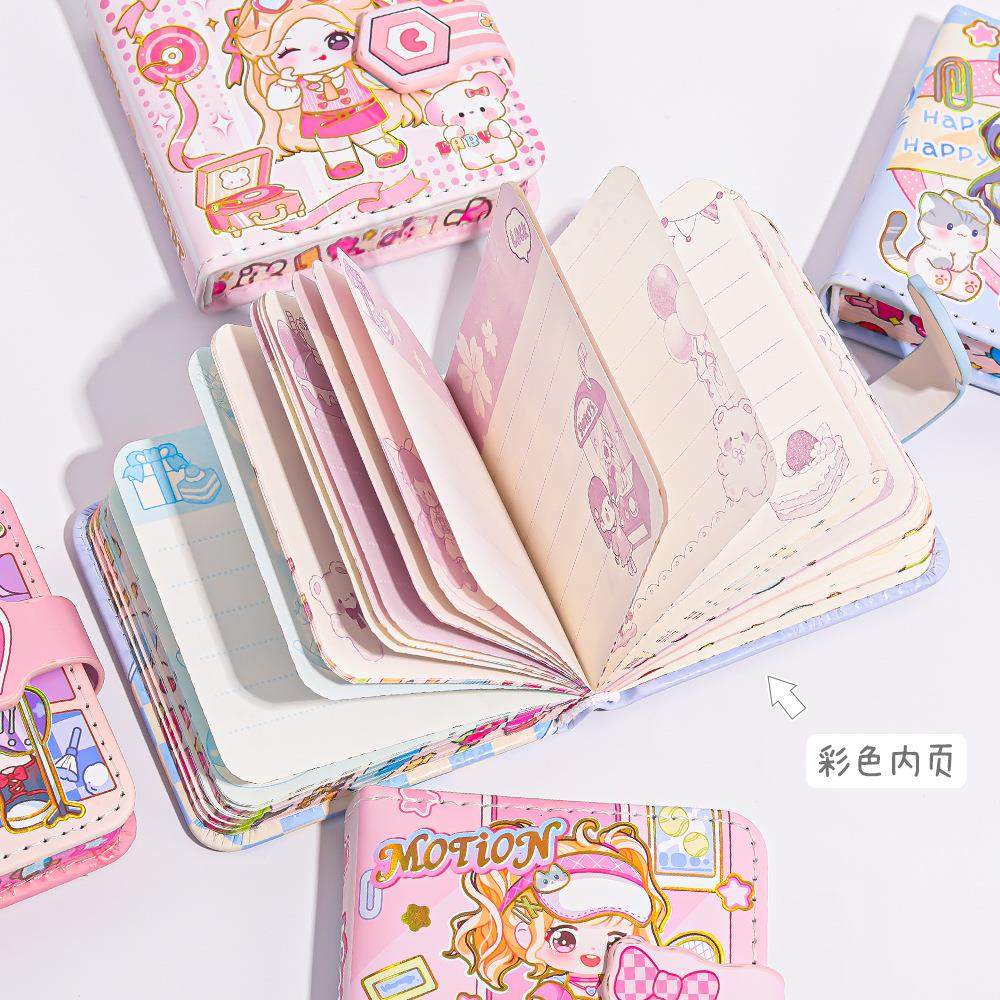 可爱方形皮面手账本可爱迷你磁扣本卡通笔记本创意手帐本