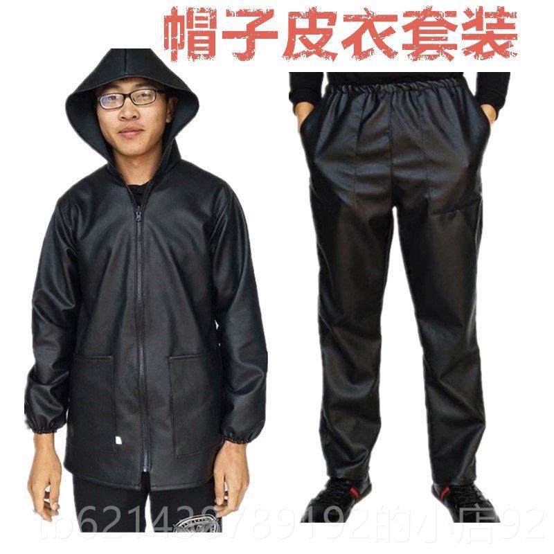 套装 裤 防油水挡风保修车水产机修玻劳纤工作 皮衣皮裤 高档PU防男士