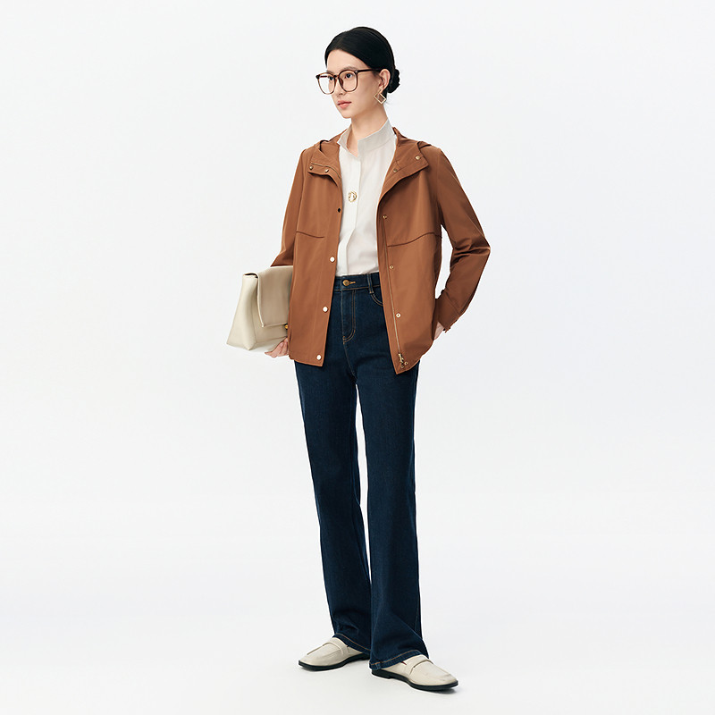 NAERSI娜尔思翻边插袋轻便连帽外套内衬花纹英伦格调26年春季 新款