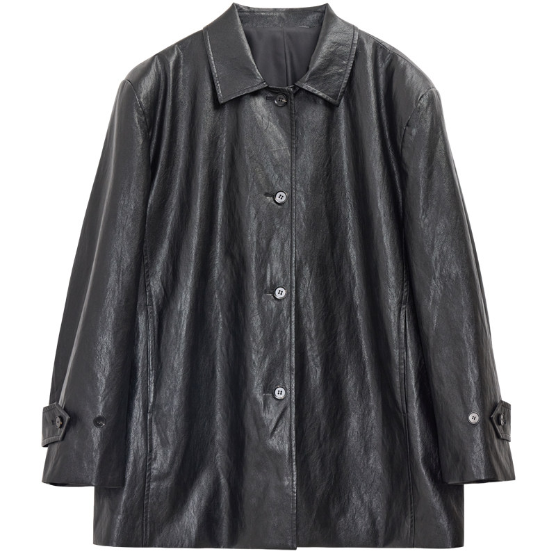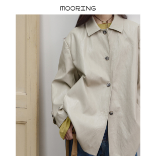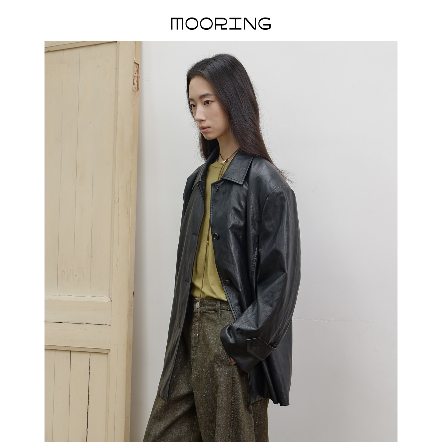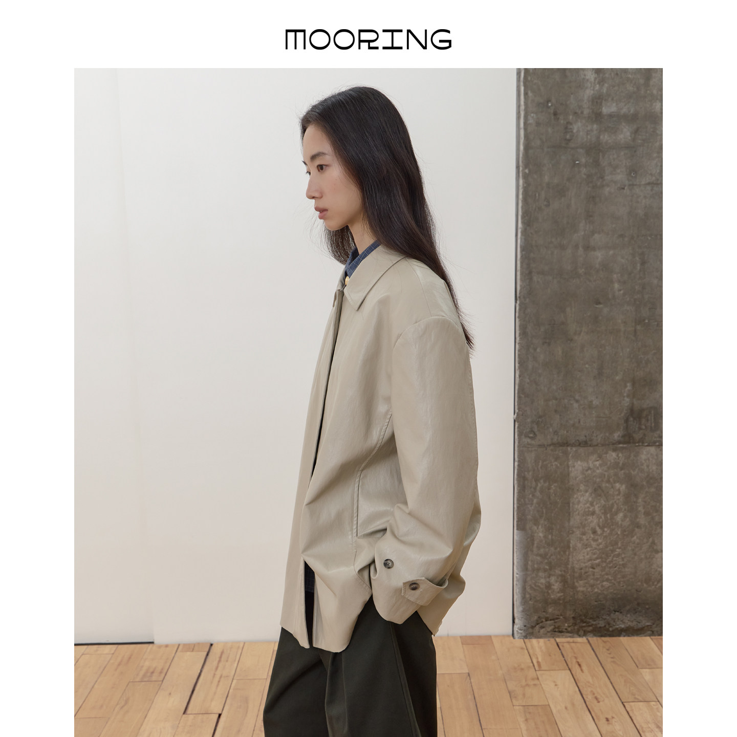 口宽松廓形上衣 后开衩可调节袖 MOORING泊 蛋白皮翻领外套