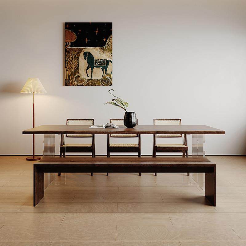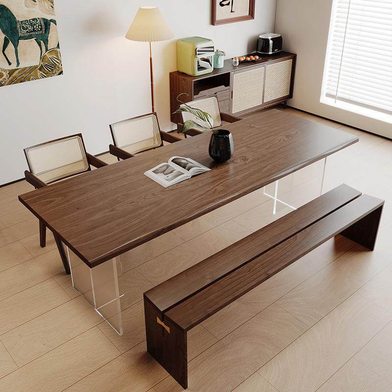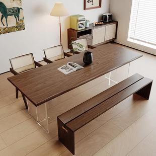 严选北美黑胡桃木餐桌椅亚克力悬浮书桌樱桃木实木松木家用饭桌椅