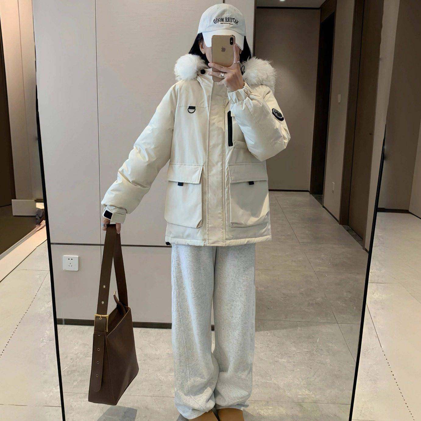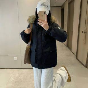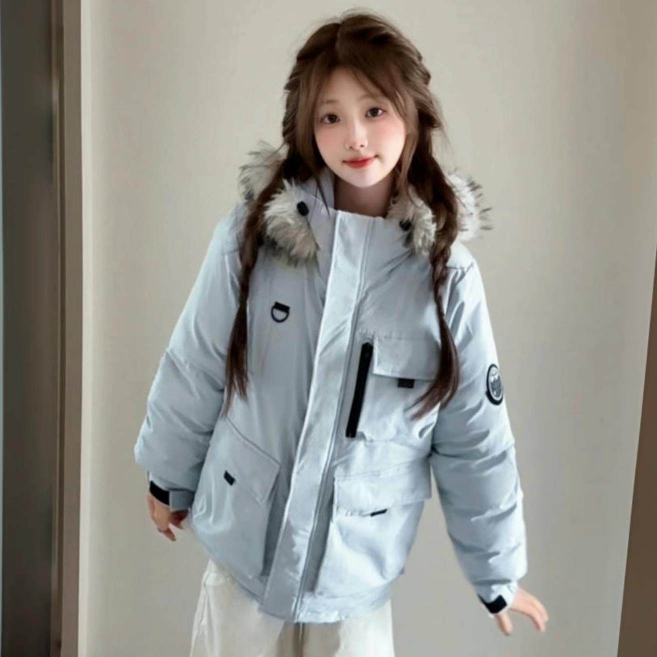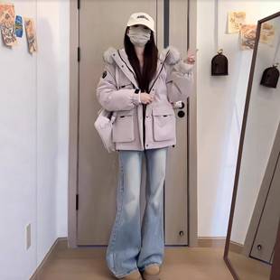 宽松棉袄大毛领棉衣外套 韩版 今年流行冰晶紫工装 派克棉服女士新款