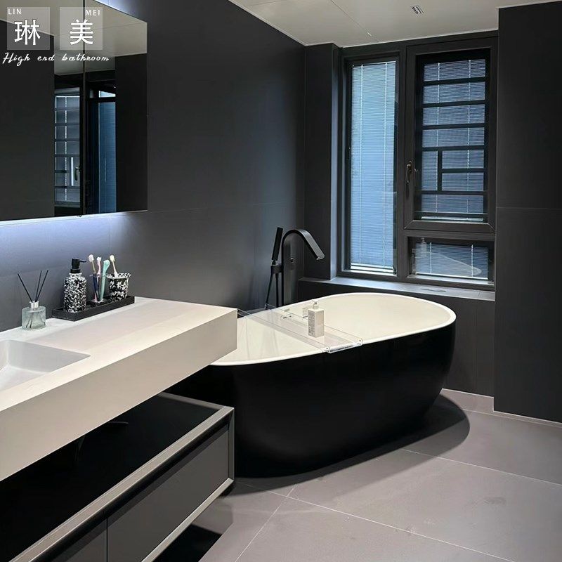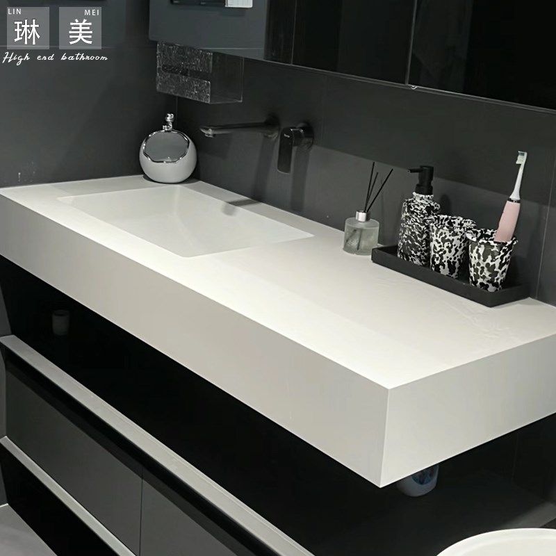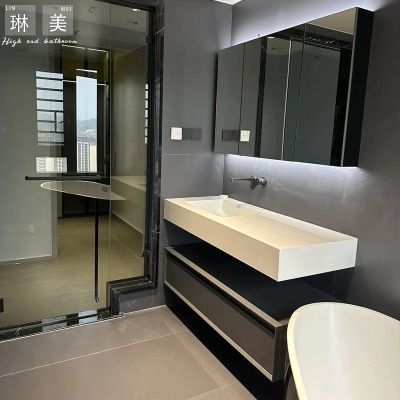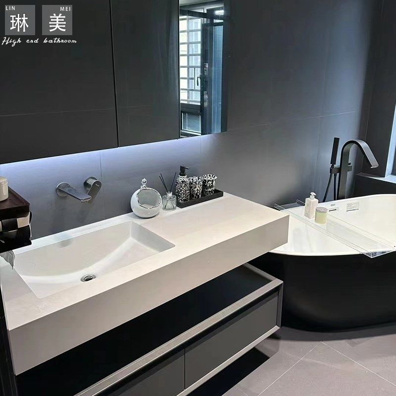 新款 浴室柜组合岩板无缝陶瓷一体盆洗漱台轻奢卫生间厕所洗手脸池