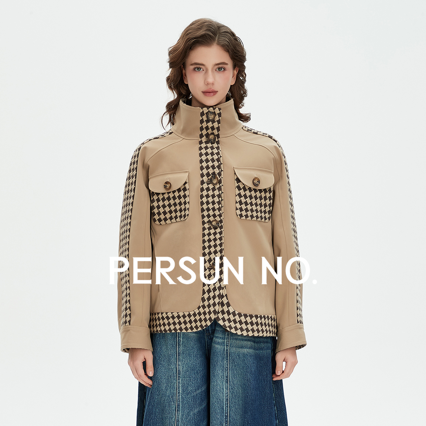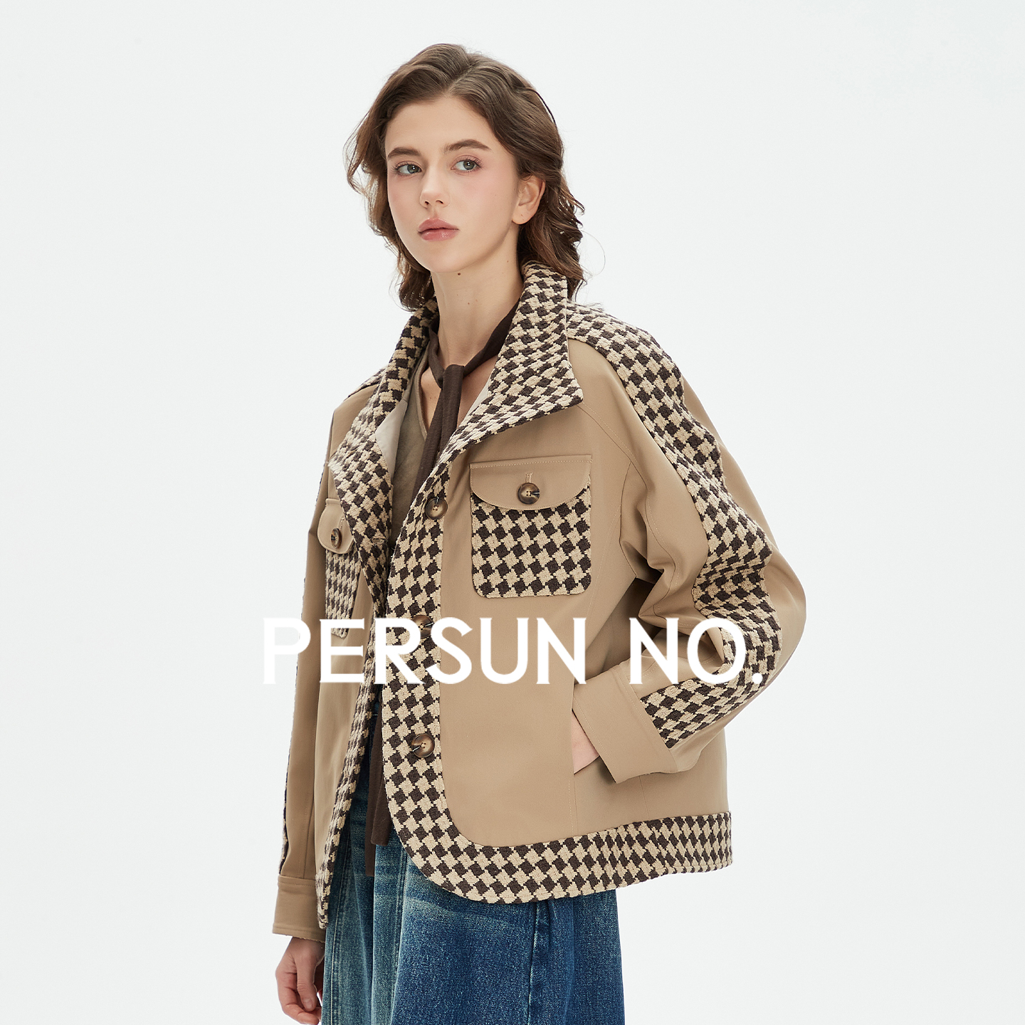 PERSUN 都市游牧风复古卡其拼贴宽松外套女通勤 NO.备述25冬季