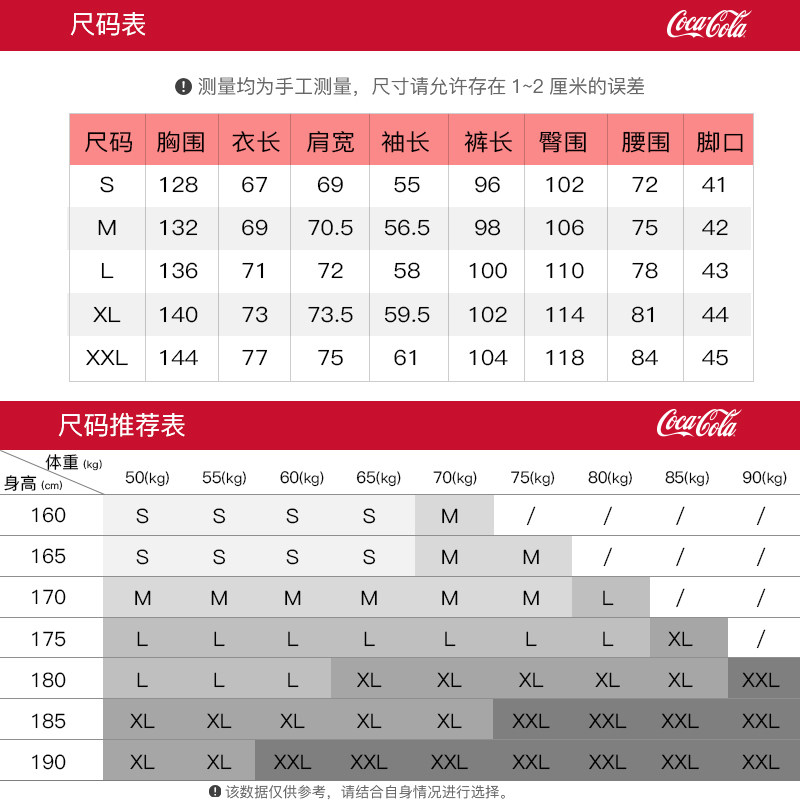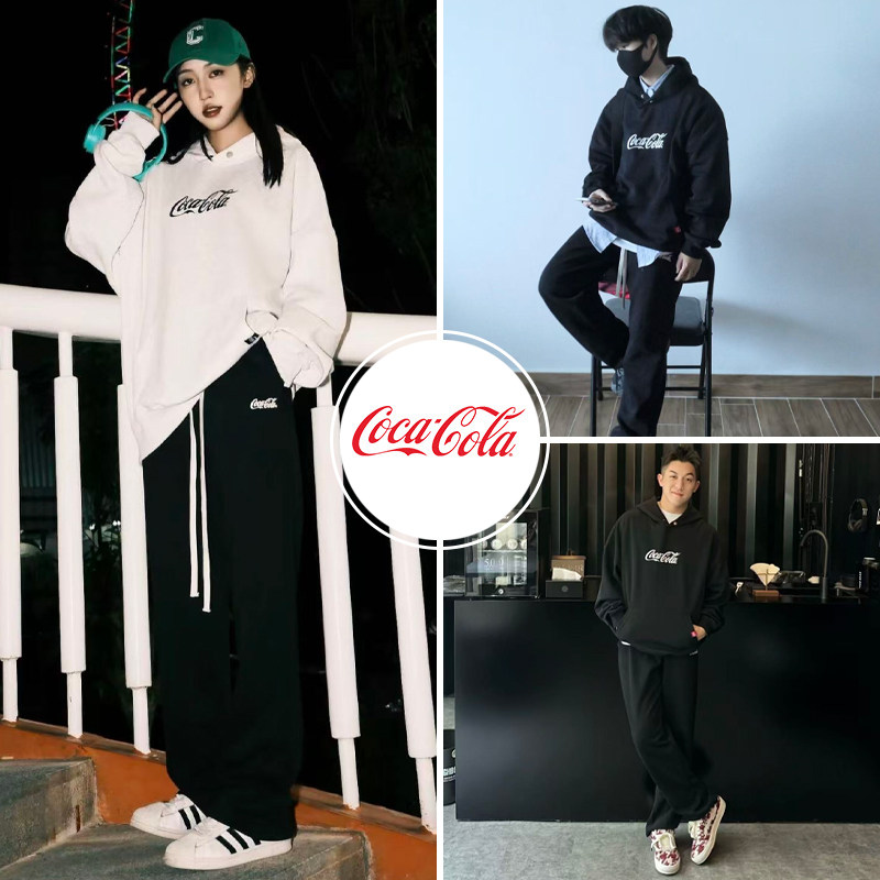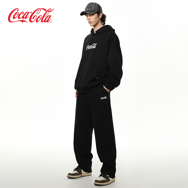 落肩连帽卫衣套装 秋冬运动长裤 男加绒加厚 Cola可口可乐美式 Coca