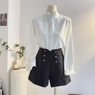 加绒加厚保暖女士打底衫 秋冬新款 职业高级衬衣 女长袖 黑色磨毛衬衫