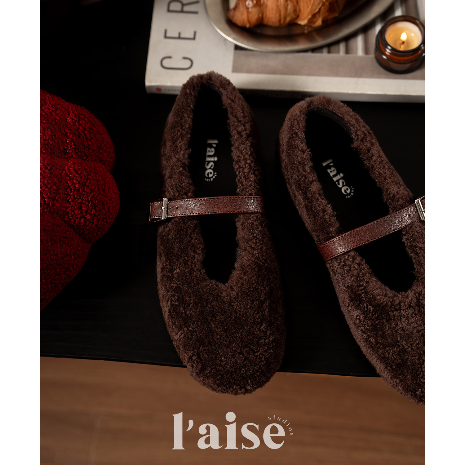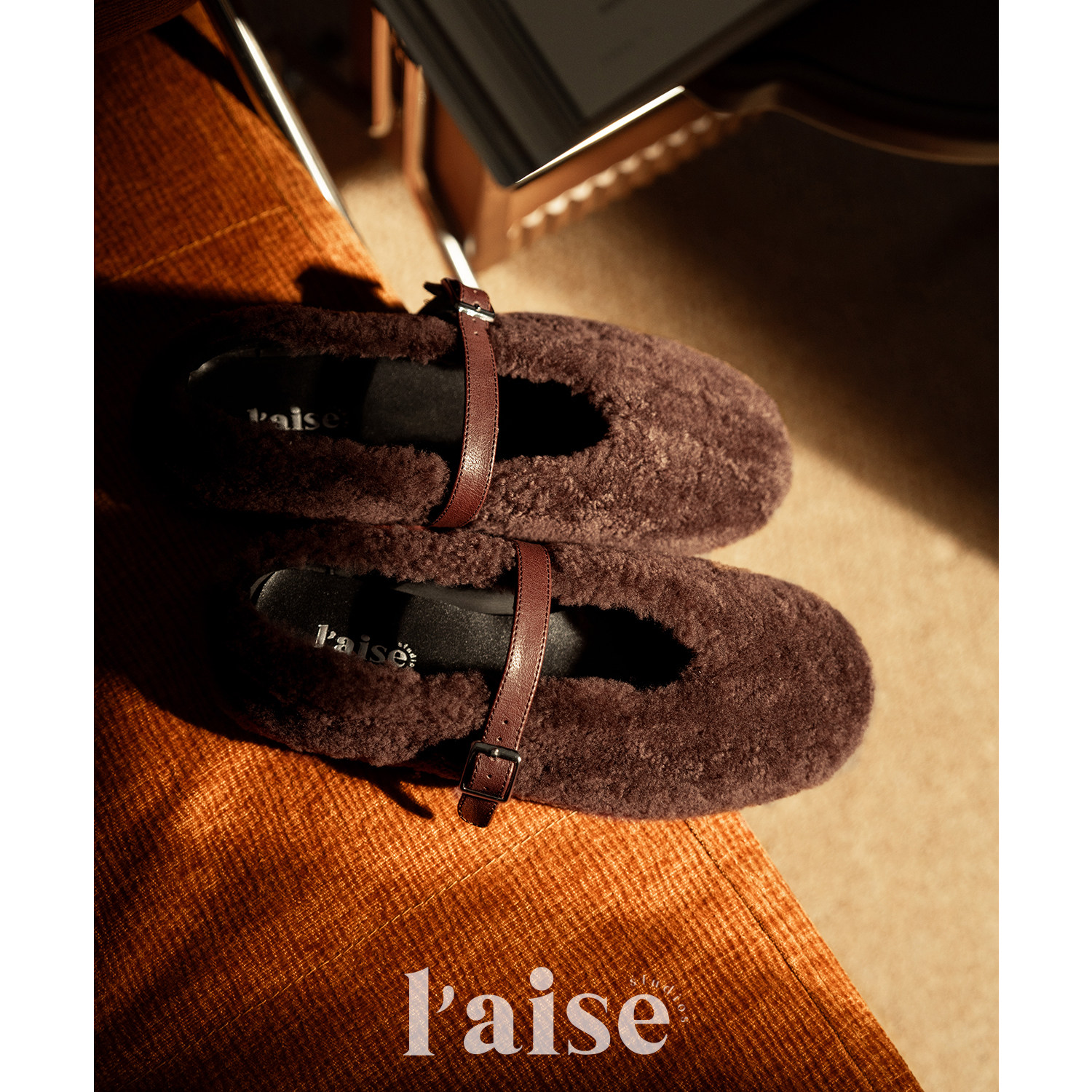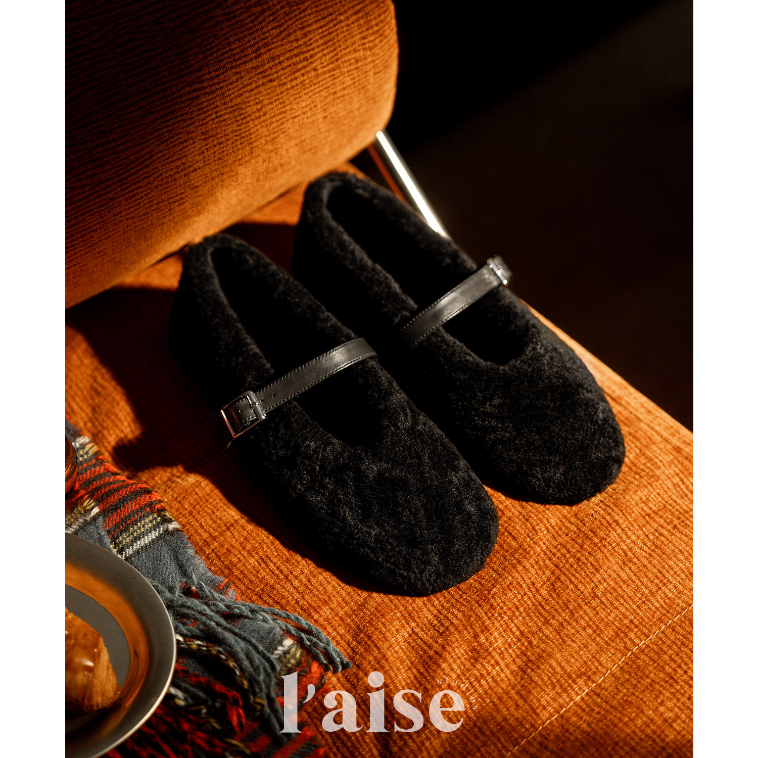 一字扣带毛毛棉鞋 2025秋冬新款 骄屿复古加绒保暖玛丽珍单鞋 真皮