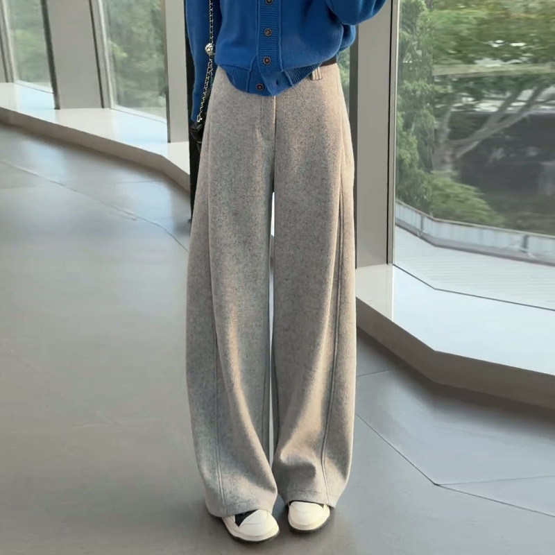 垂感毛呢直筒阔腿休闲裤 高腰显瘦休闲裤 软糯女新款 子 加绒