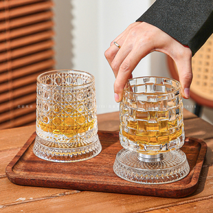 网红威士忌旋转酒杯高级感转转杯洋酒玻璃杯白兰地家用会转 杯子
