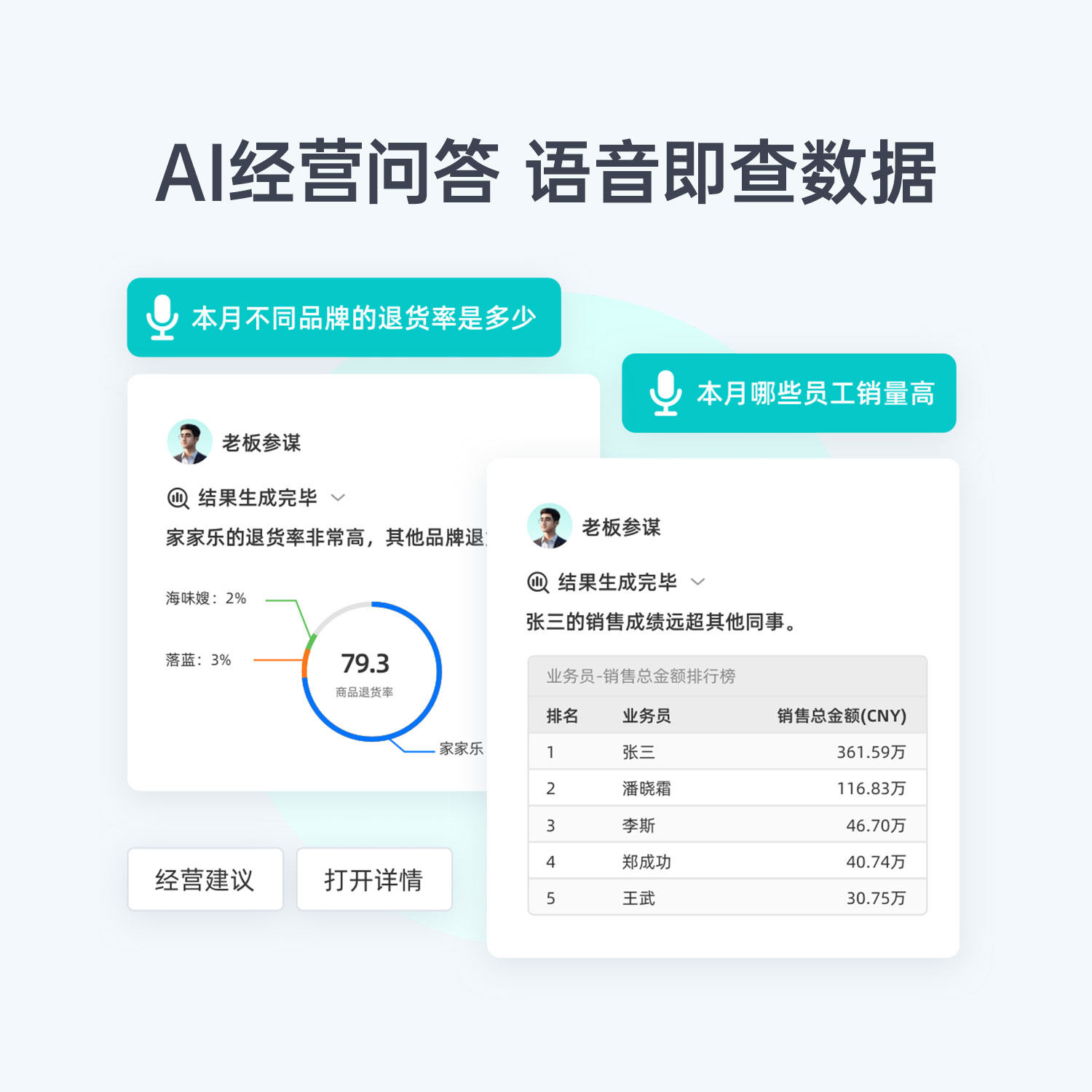 金蝶AI星辰老板参谋 AI语音查数分析报表检测经营风险数据看板
