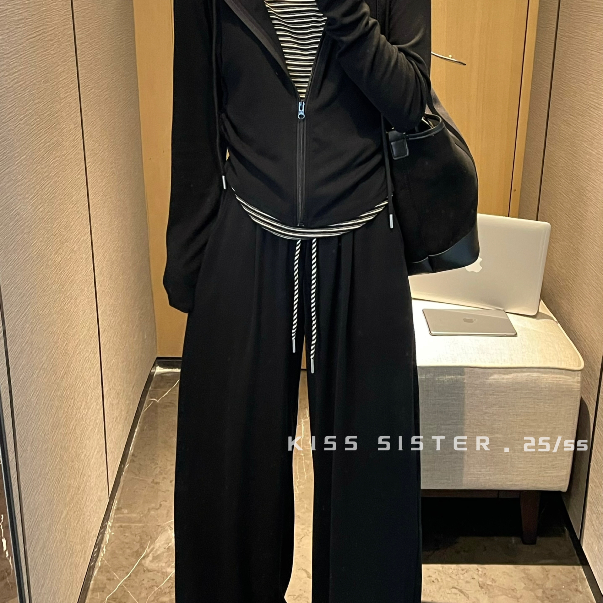 套装 KISS 软糯舒适休闲裤 感拼接条纹假两件针织开衫 A1810 SISTER