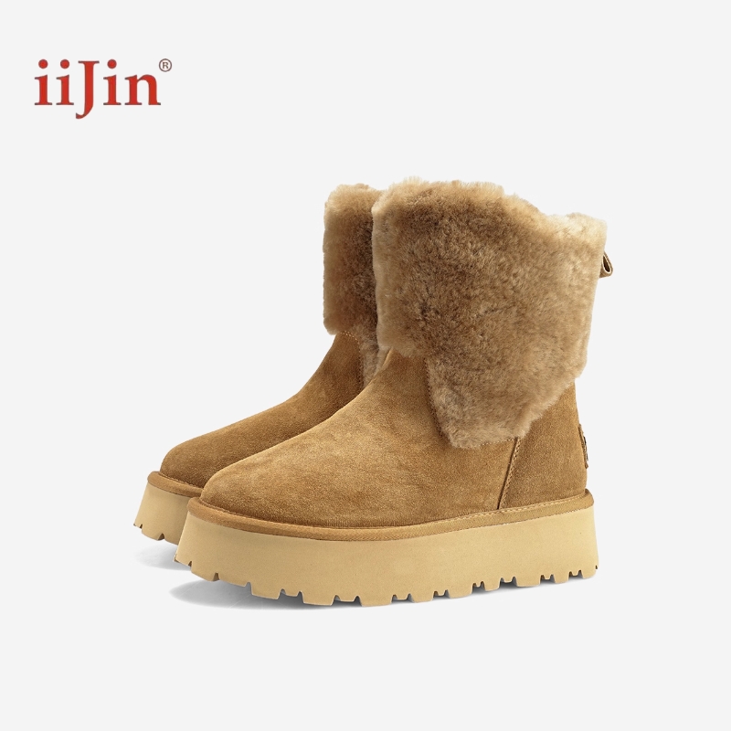 香港代购 超轻拼皮内增高8cm厚底羊毛中筒雪地靴 iijin艾今2025冬季