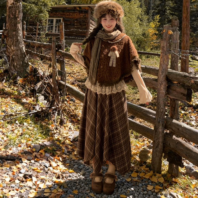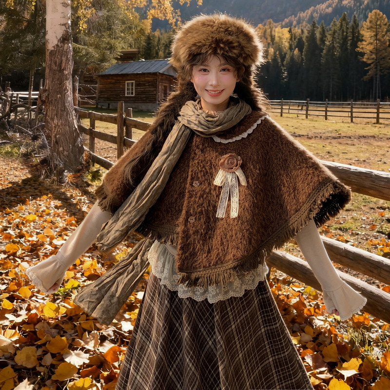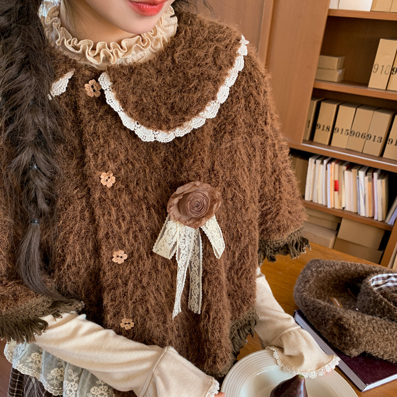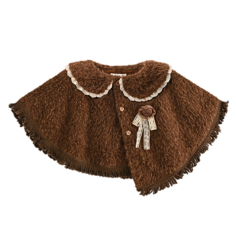 森女部落森系娃娃领斗篷2025新款 百搭复古设计感流苏宽松外套冬季
