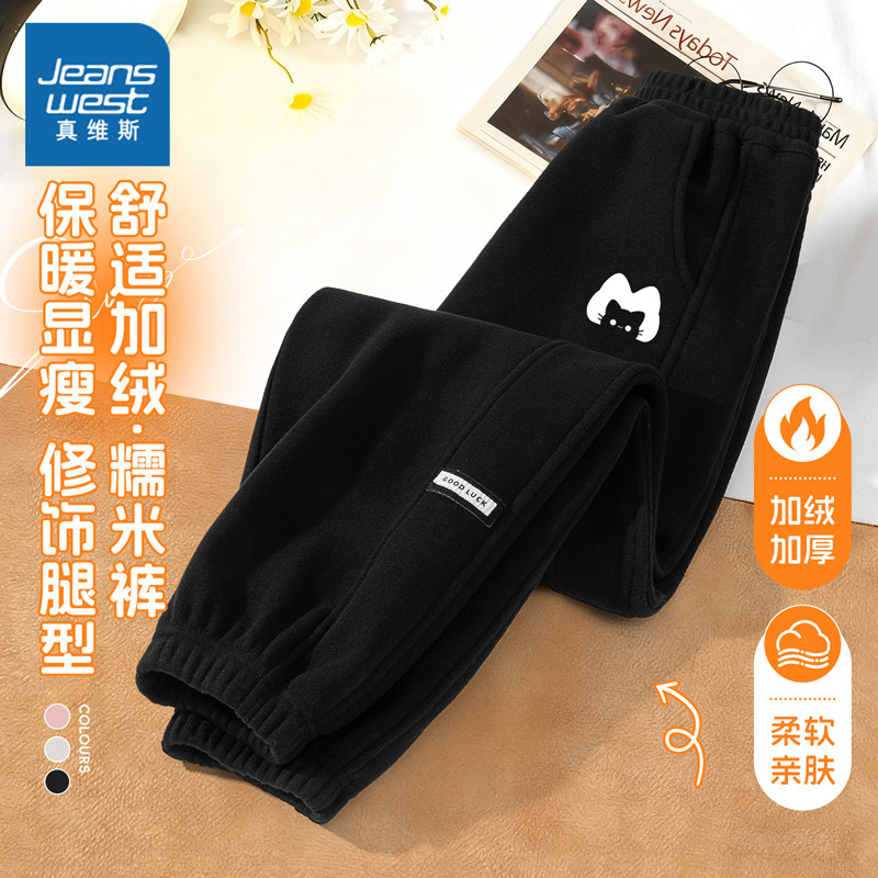 显瘦小个子黑色加绒休闲运动长裤 MissWiss直筒裤 子女秋冬2025新款