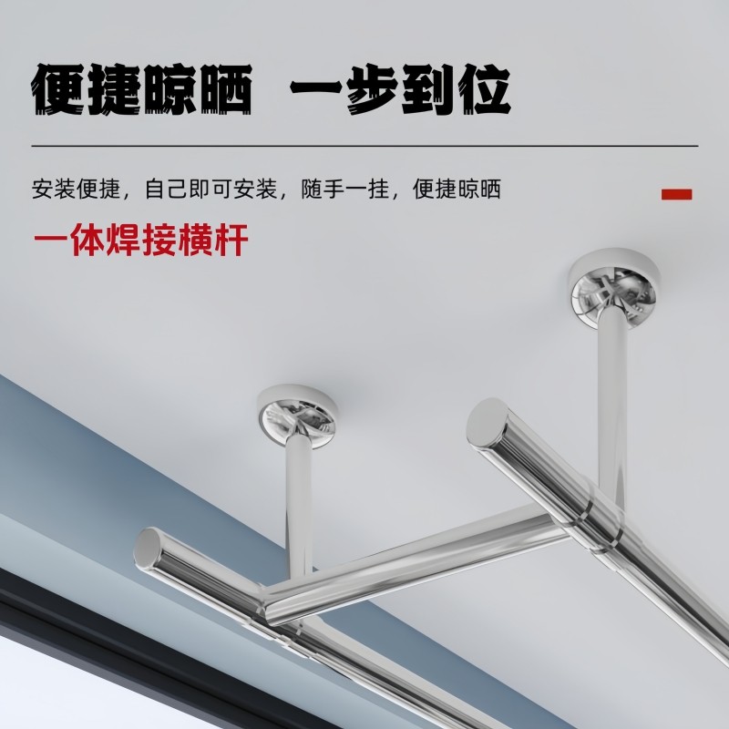 不锈钢晾衣杆阳台悬挂顶装 井晾衣架双杆家用晒衣吊杆子304 固定式