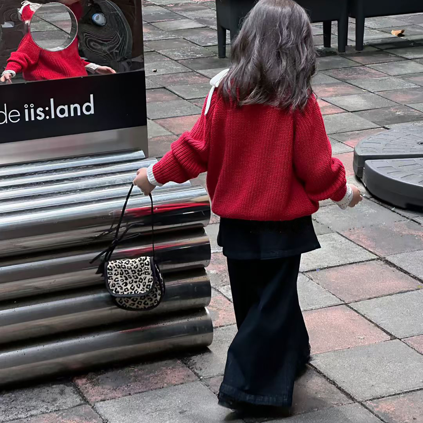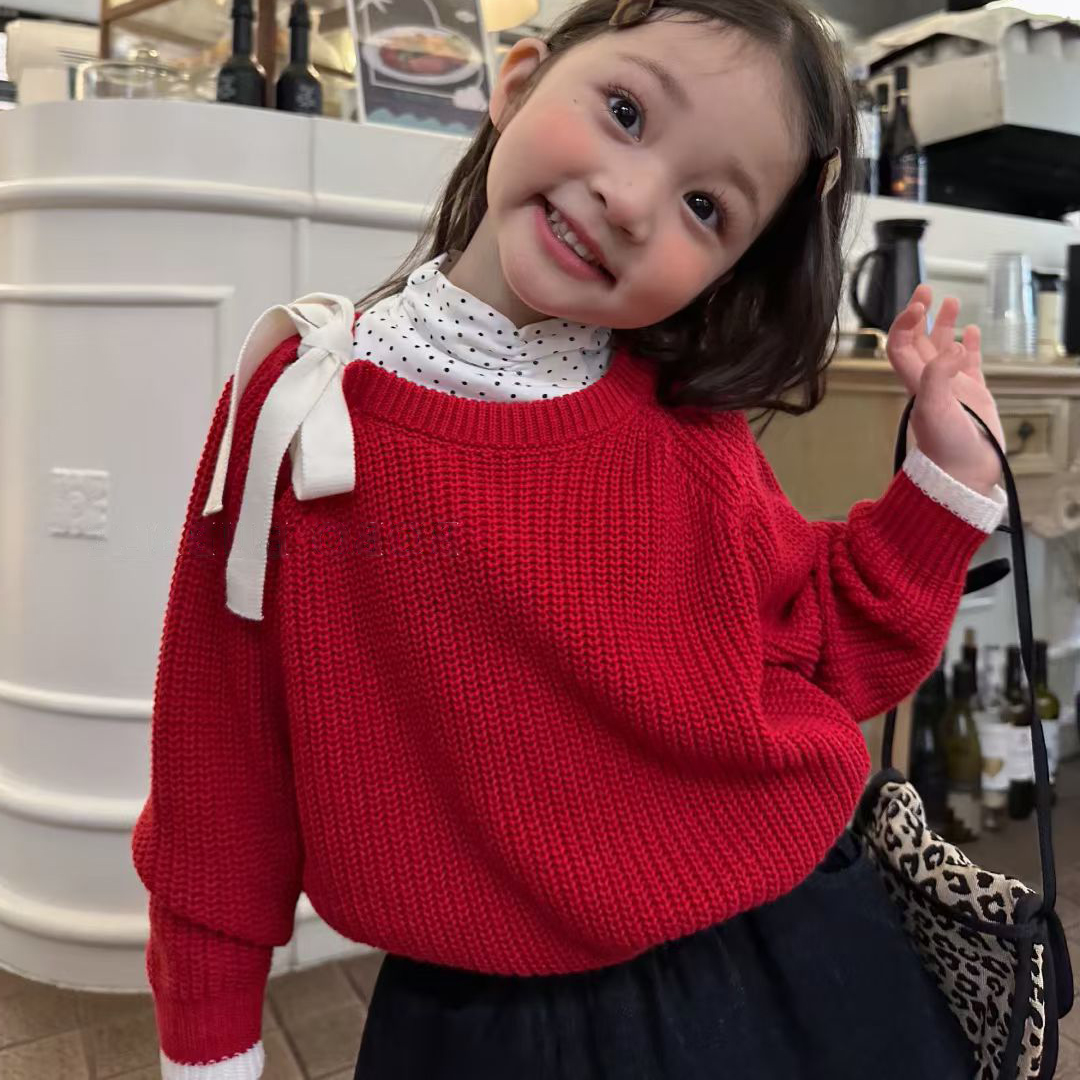 女宝宝洋气百搭保暖红色新年毛衣儿童上衣冬 25新款 女童针织衫 冬季