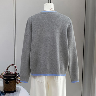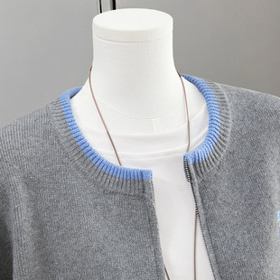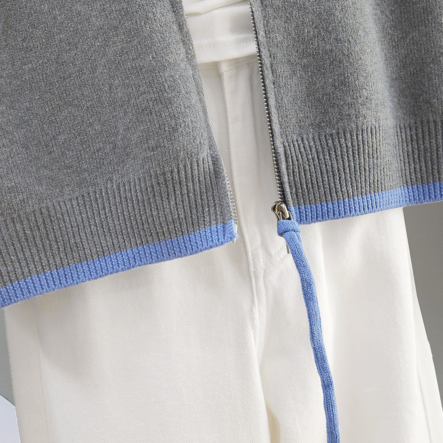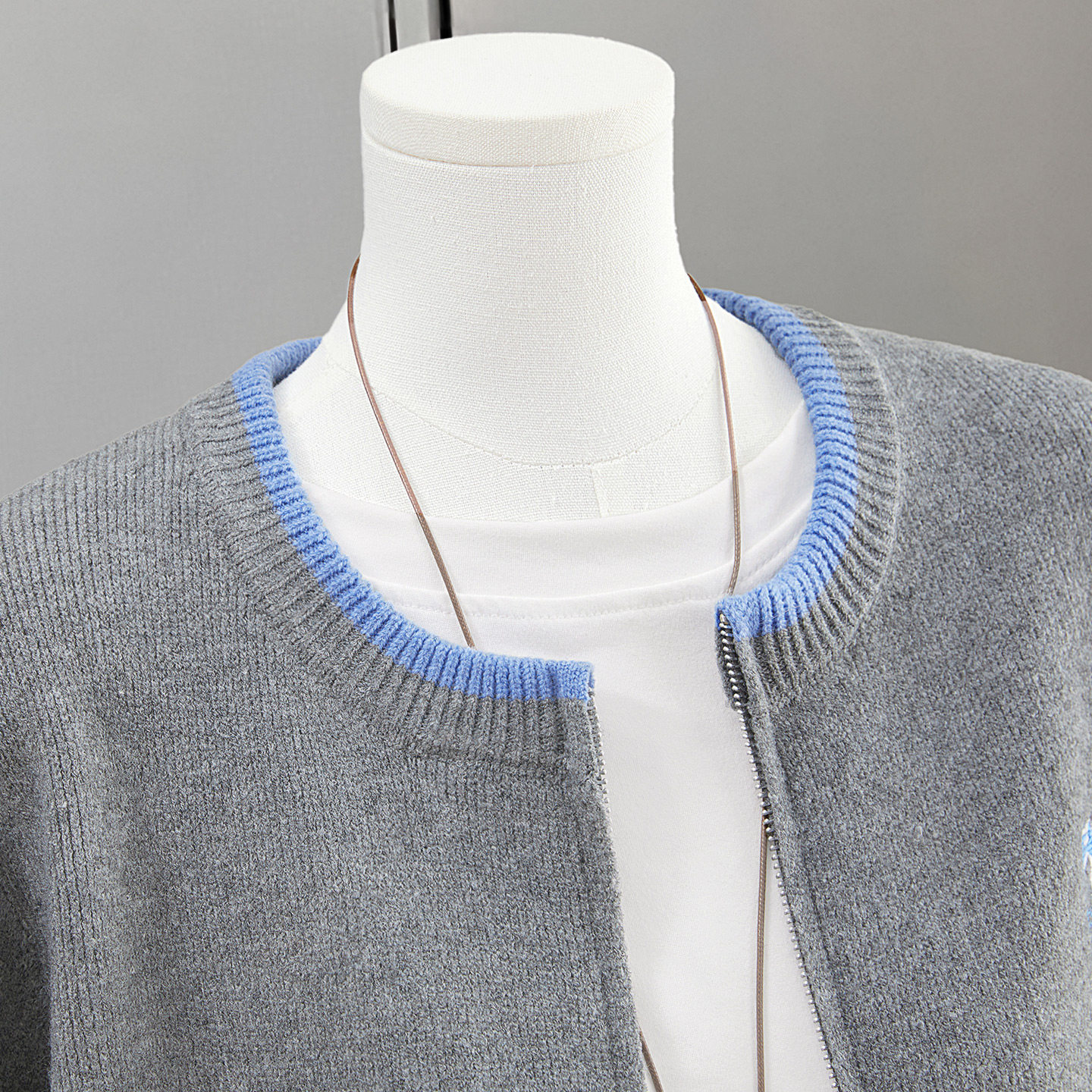 女装 新款 时尚 休闲风宽松款 她池圆领针织衫 撞色拉链开衫 2025秋装