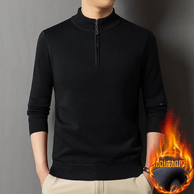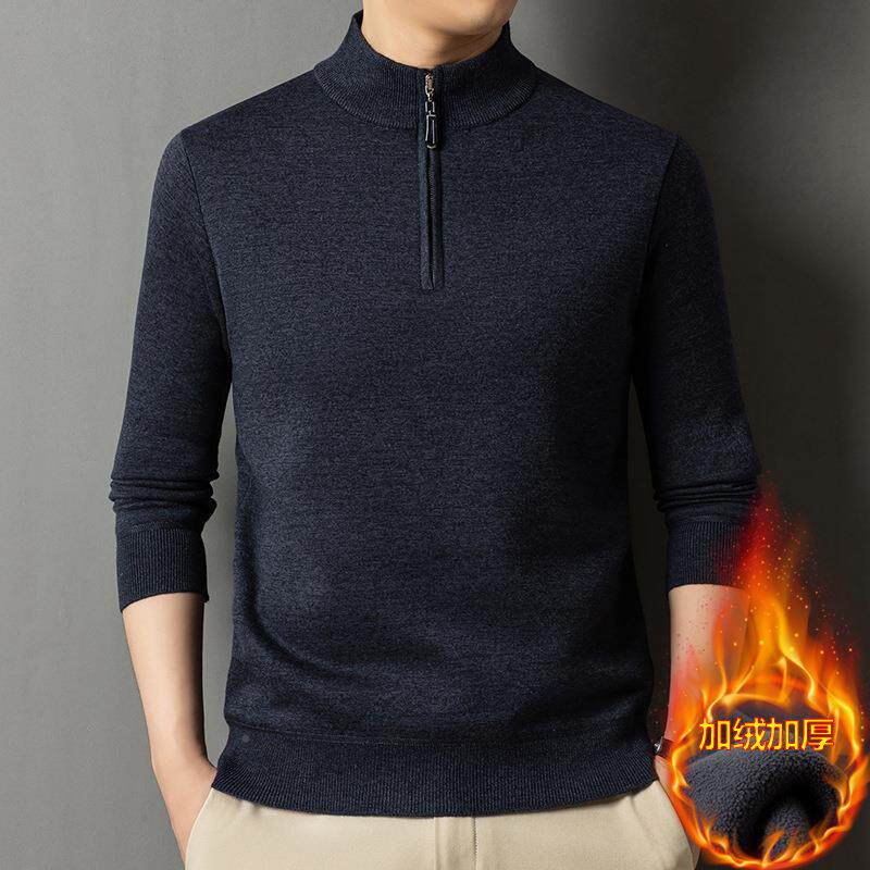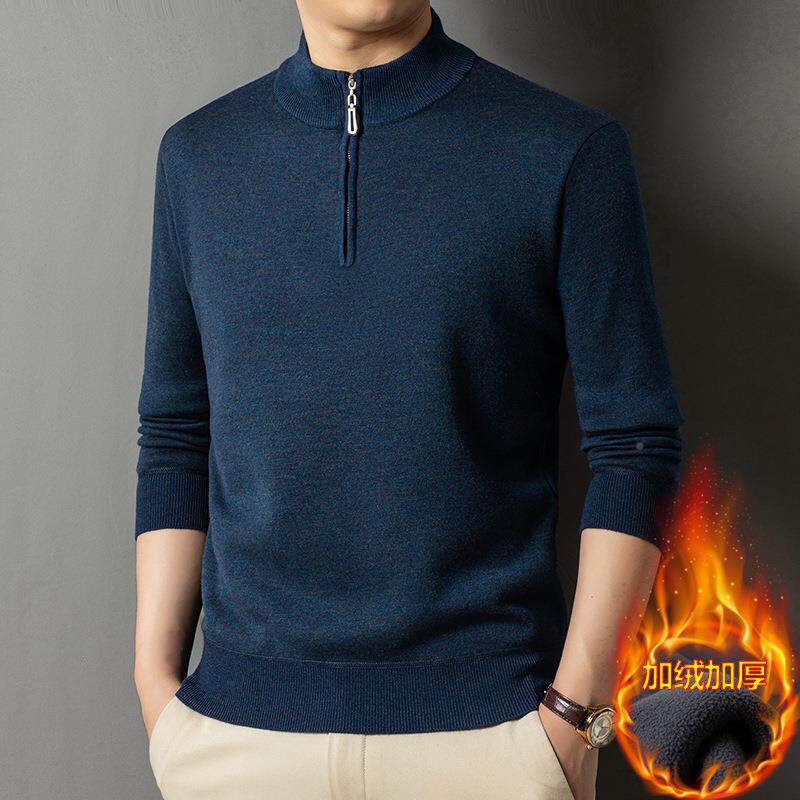 链羊暖毛衫 YA衫 中年休闲拉领套头保毛衣打 加绒加厚YM623 秋冬男士