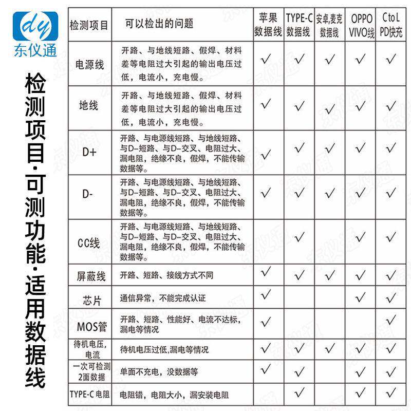 苹果TYPE C安卓等数据线测试小盒DY9603支持中英文菜单