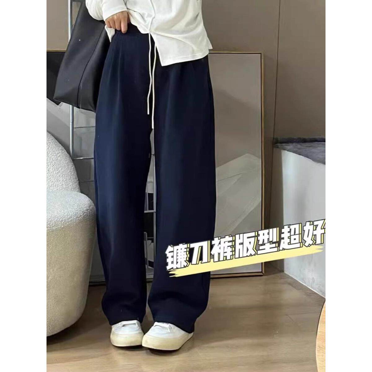宽松直休闲运动裤 夏天小高腰香蕉宽腿弯刀裤 妇女 镰刀运动裤