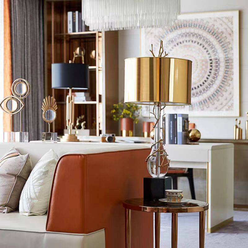 创意全铜台灯全铜水晶台灯大理石灯设计师高档样板房别墅轻奢后