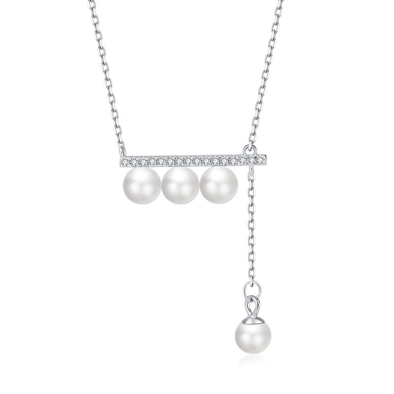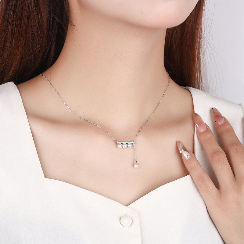 瑞士Francesca s925银四分音符平衡木珍珠项链轻奢一字型珍珠项链