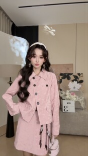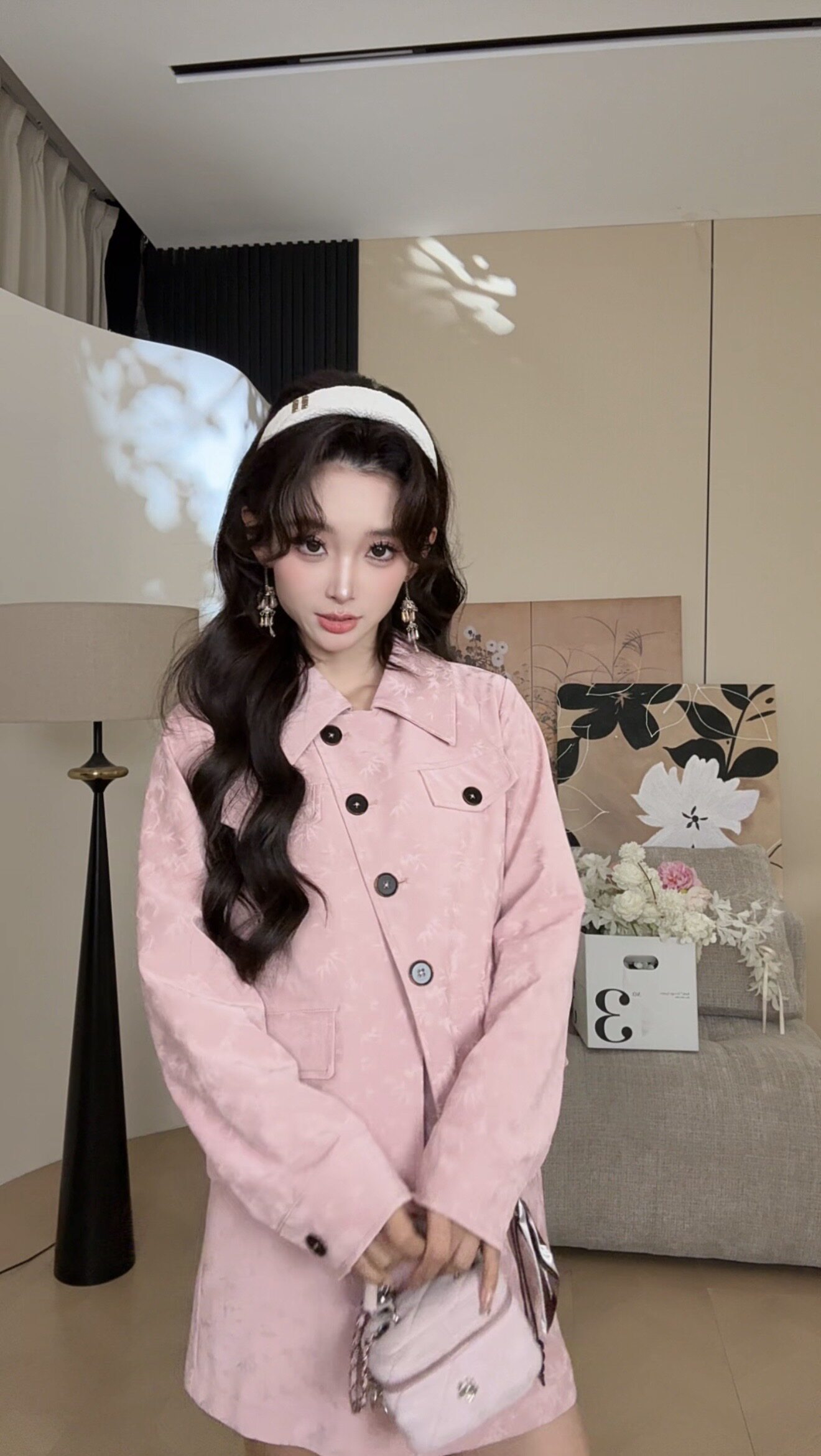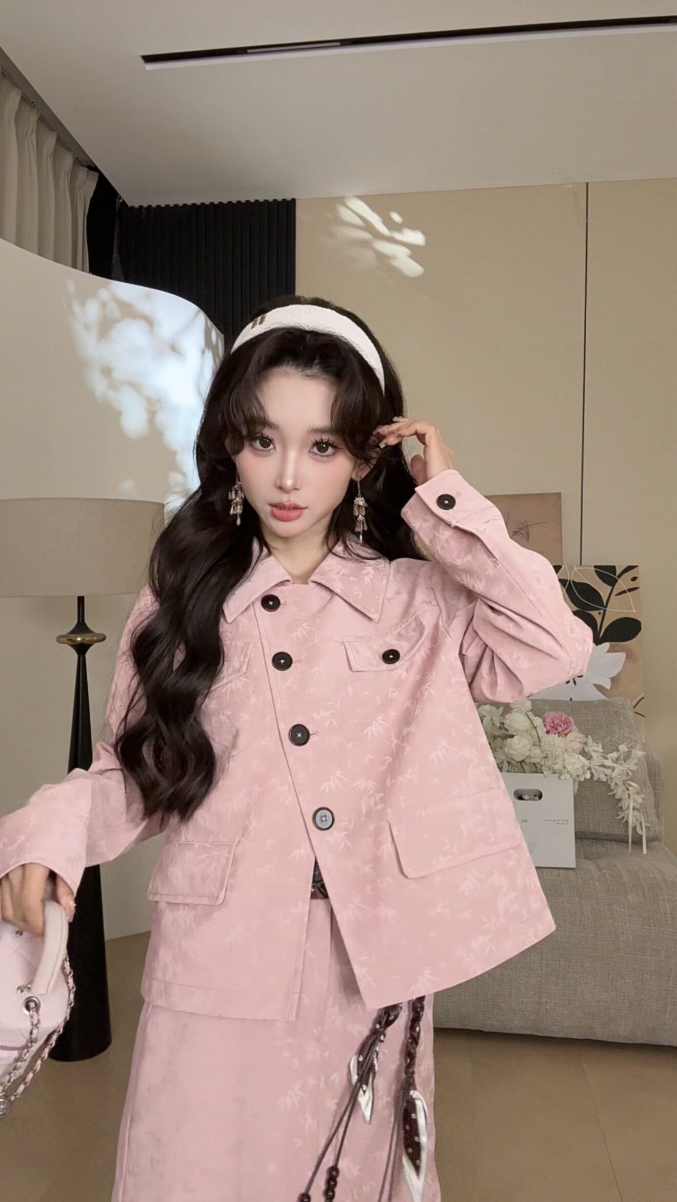 洋气时尚 品质女装 休闲原创小众老钱风 粉竹春序套装 可可可欣