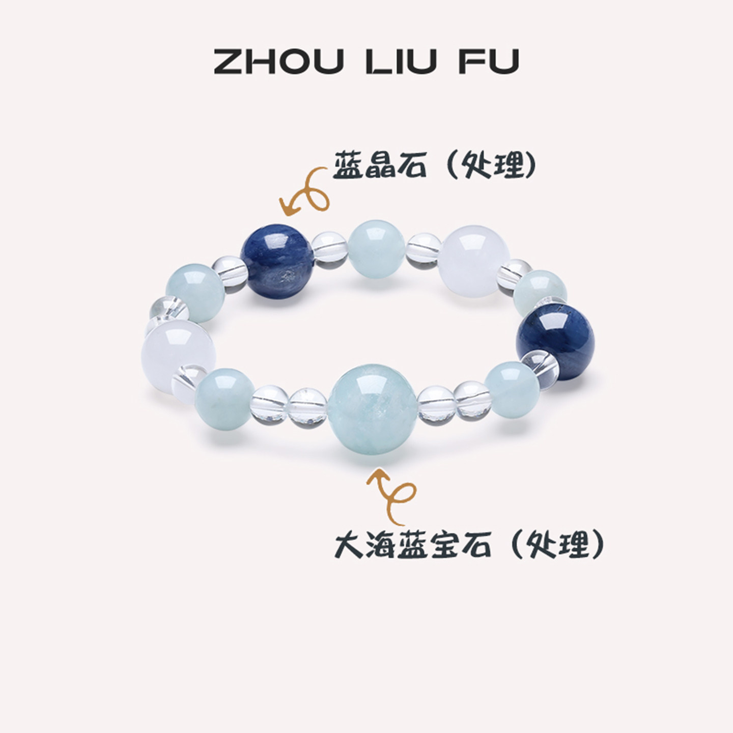 周六福海蓝宝石手串女款 冰川之海水晶半宝手串节日礼物送女友