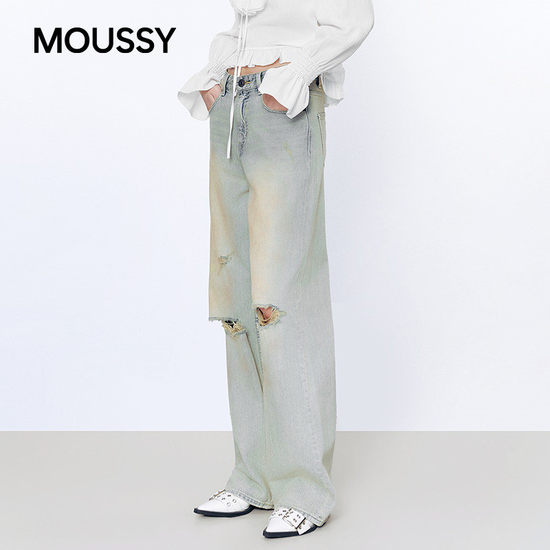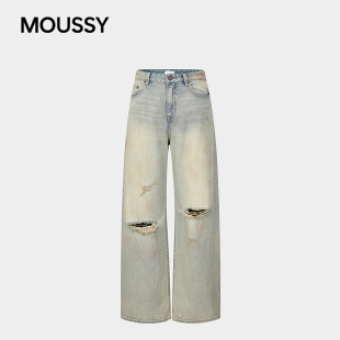 女028JSA11 MOUSSY 慵懒风破洞休闲牛仔阔腿长裤 新品 1004 2026夏季