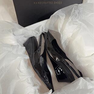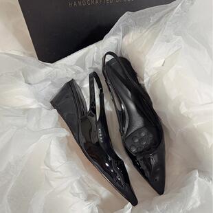 高跟透气通勤风经典 红色百搭坡跟气质真皮尖头后拉凉鞋