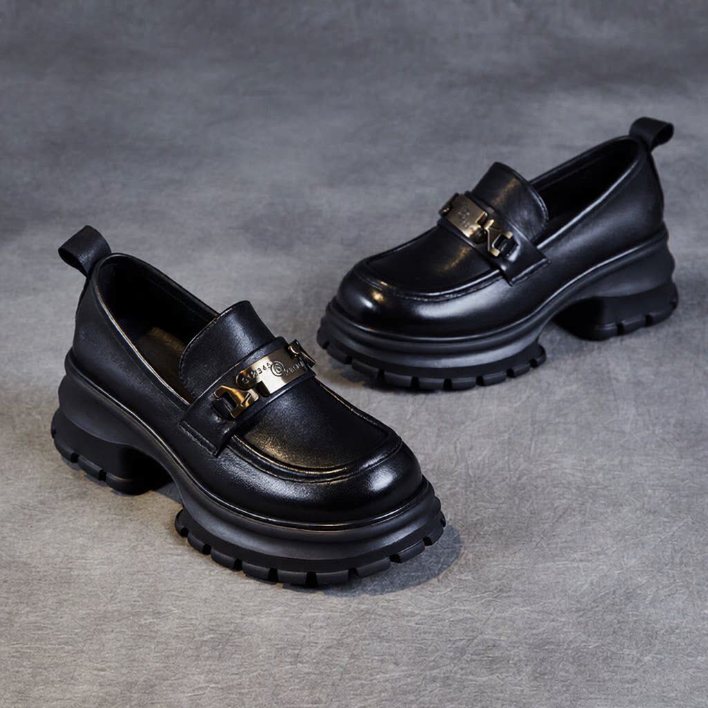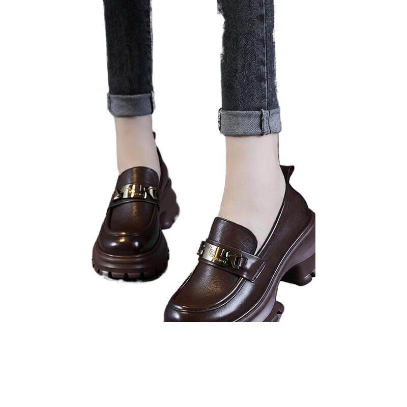 休闲百搭小皮鞋 头层牛皮乐福鞋 松糕厚底单鞋 真皮女鞋 春秋新款