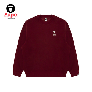 Aape旗舰店男装 秋冬小标徽章简约休闲薄绒红色圆领卫衣C349XXP