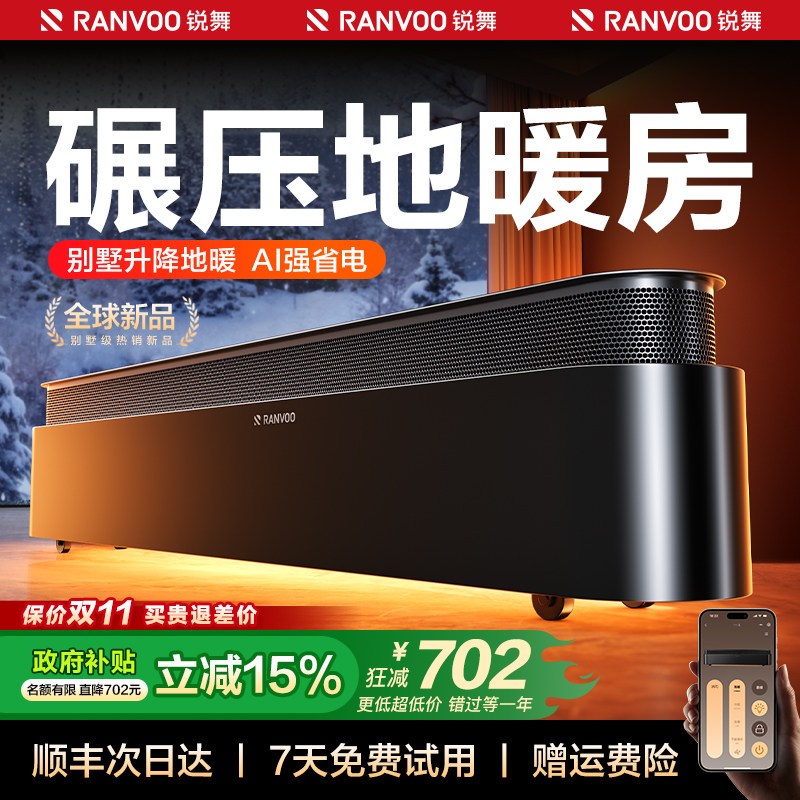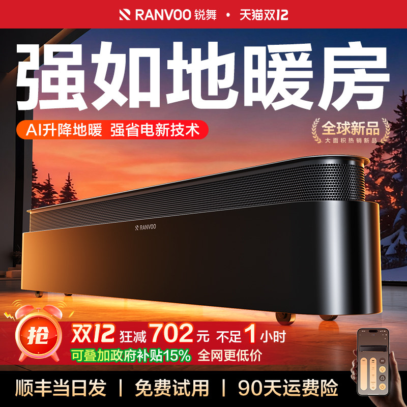 锐舞踢脚线取暖器2025新款 全屋大面积家用节能电暖气新型加热神器