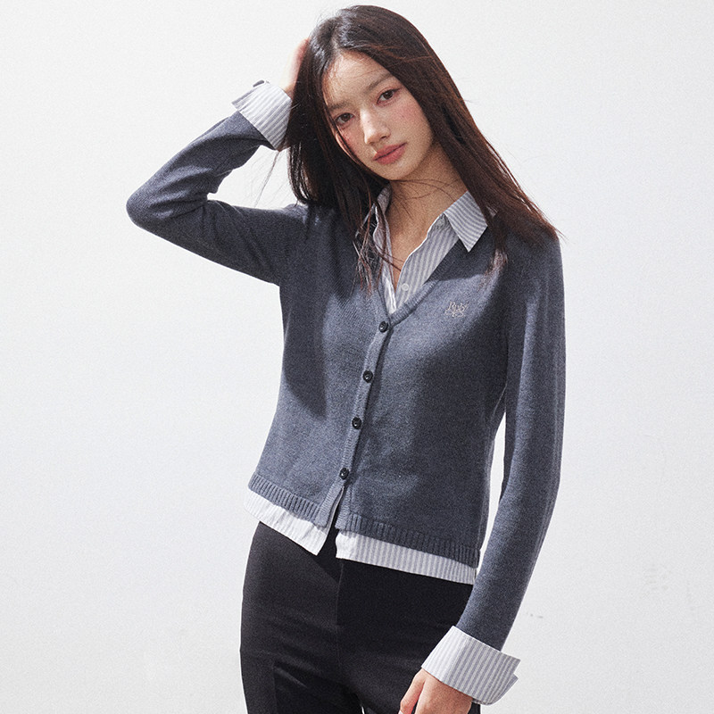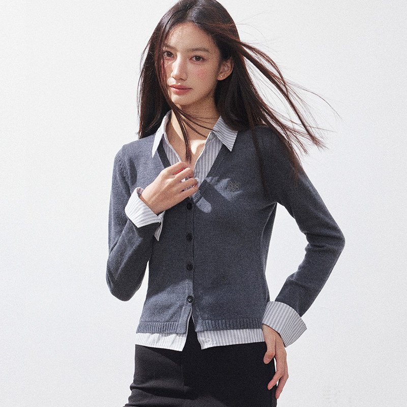 女收腰时尚 RPB 开衫 V领假两件针织衬衫 内搭学院风显瘦上衣 BRAND