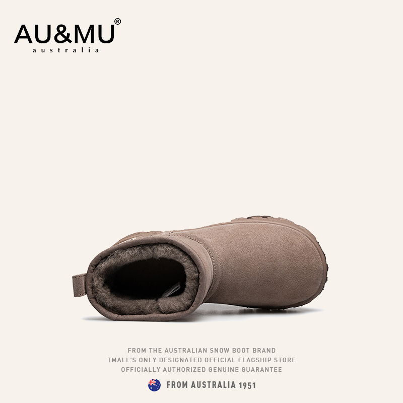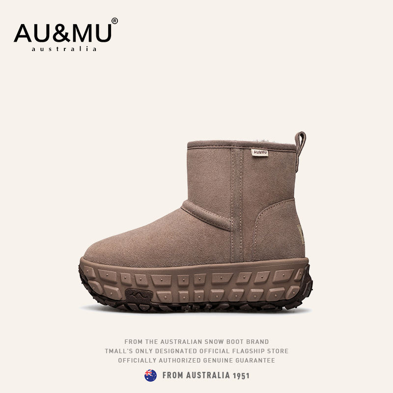 AUMU澳洲羊皮毛一体雪地靴女时尚 保暖靴 厚底轮胎中筒2025秋冬新品