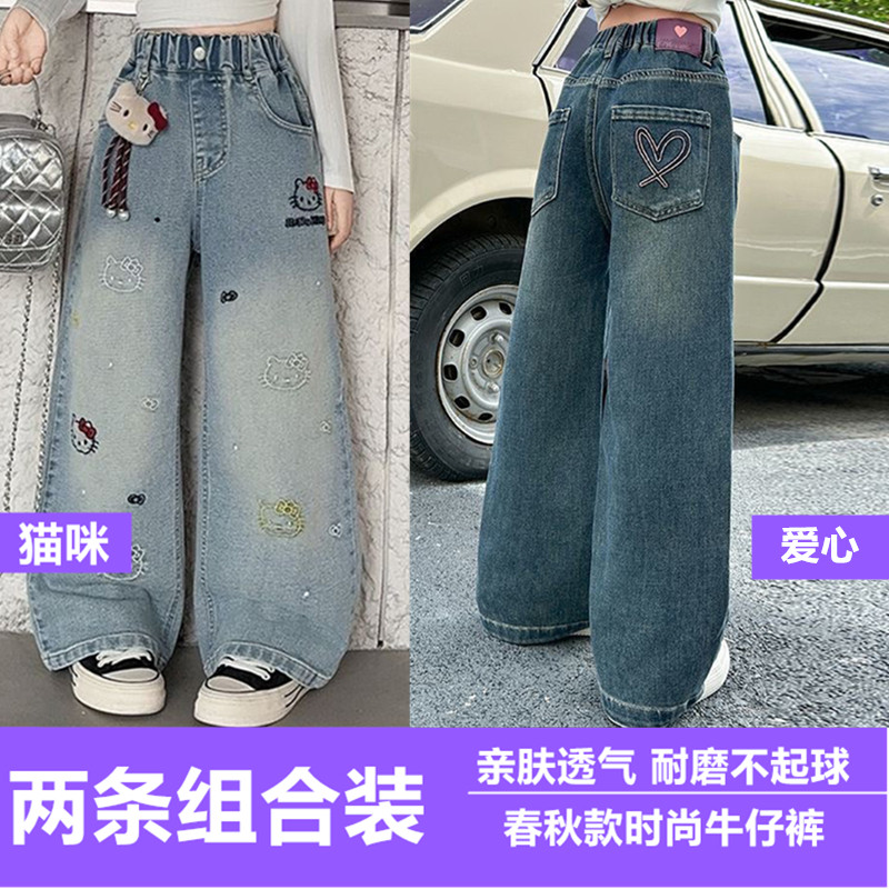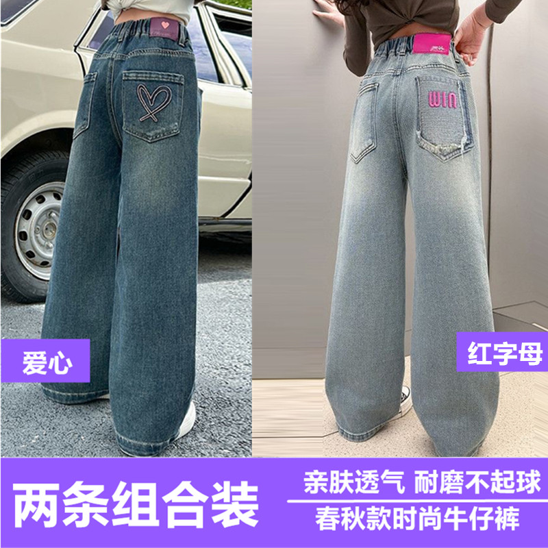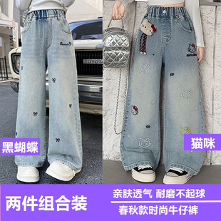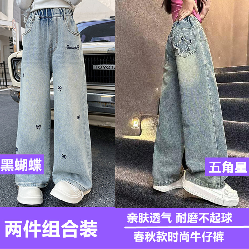 秋冬新款 女孩长裤 儿童洋气加绒阔腿裤 直筒裤 中大童冬季 女童牛仔裤
