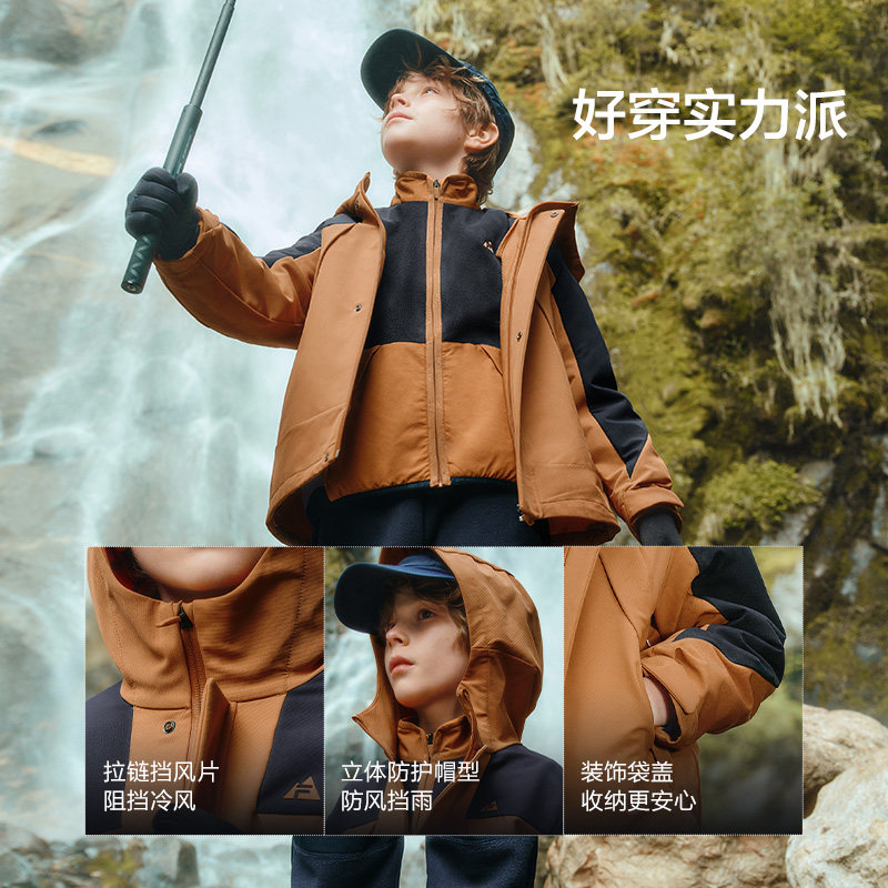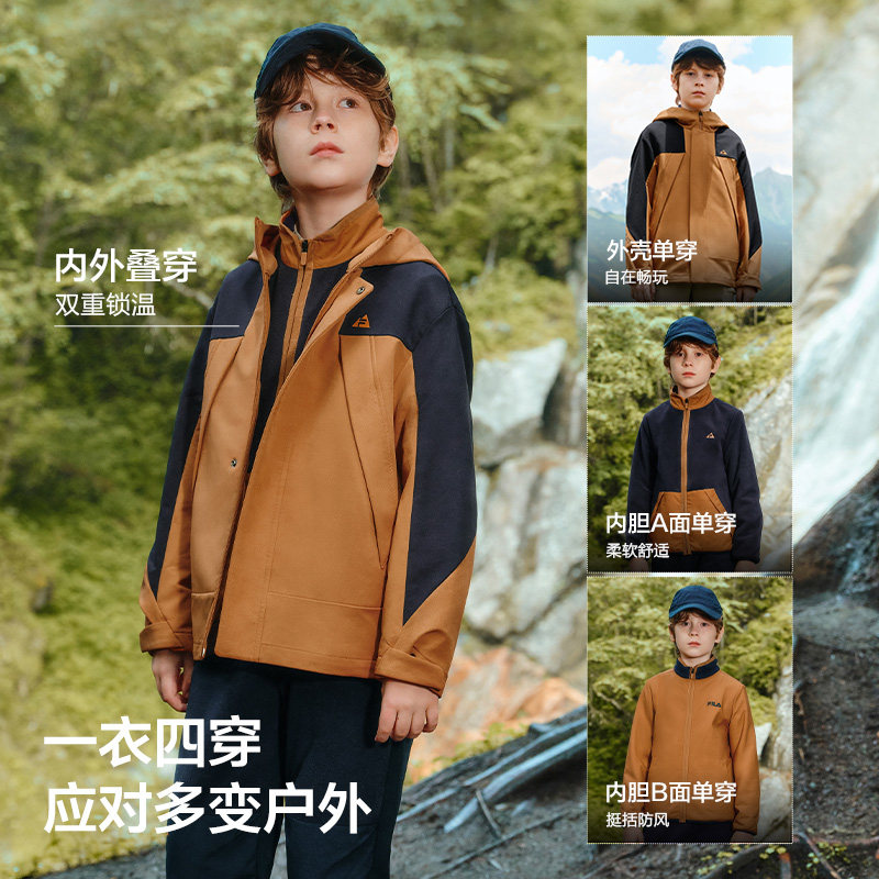 FILA斐乐儿童外套三合一2025秋冬新款 男童防风防水上衣户外两件套