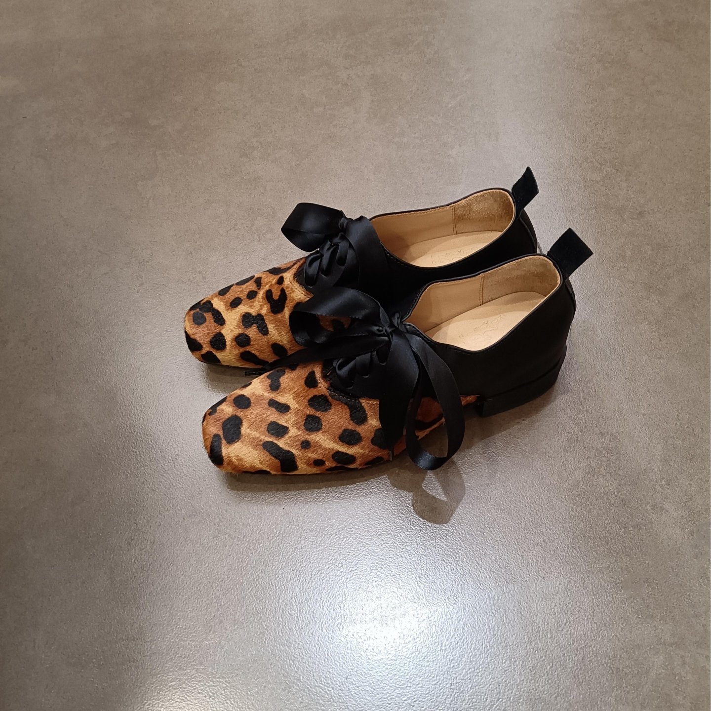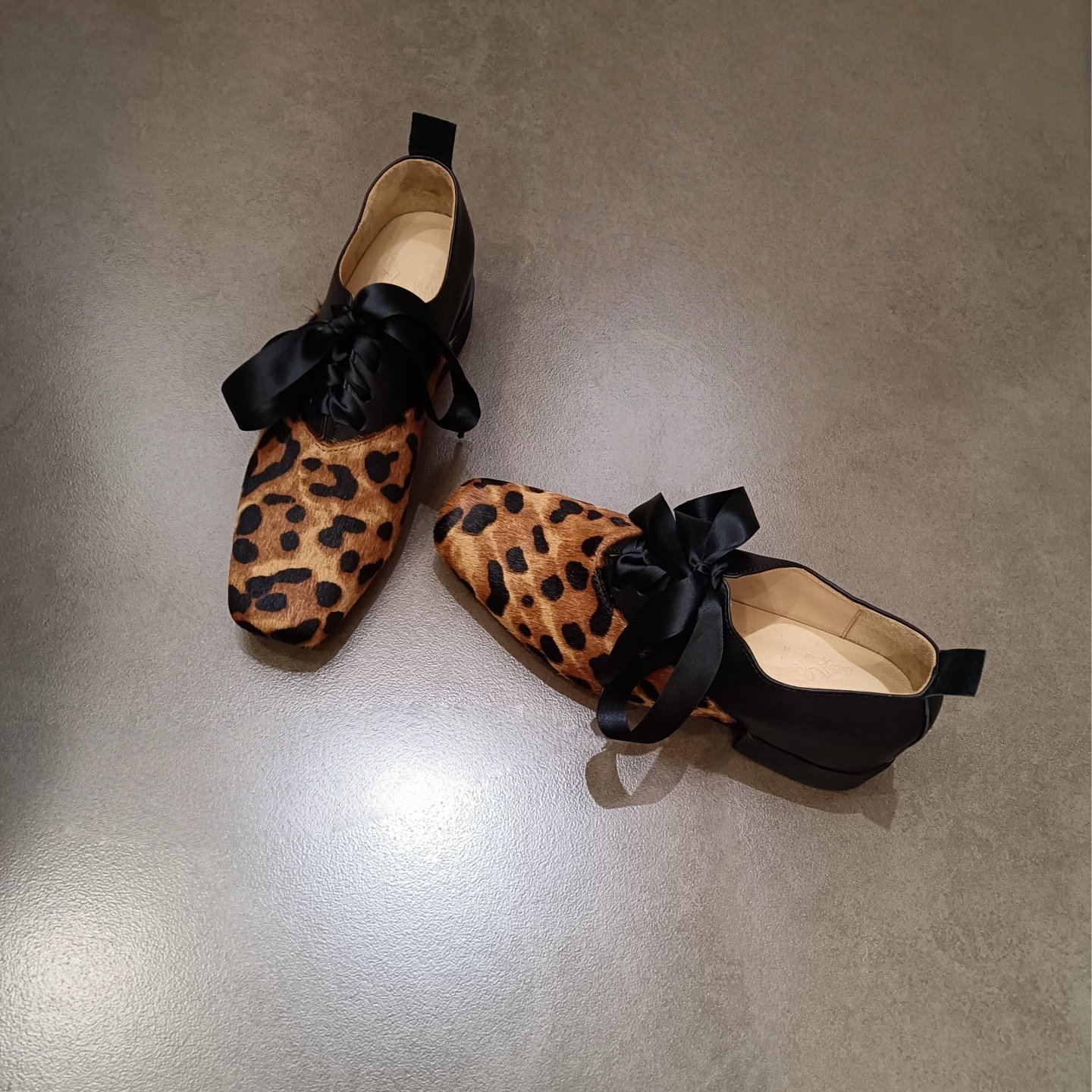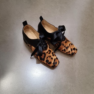 6cm内增高豹纹真马毛拼接羊皮系带防滑中跟单鞋 超好看独特漂亮鞋