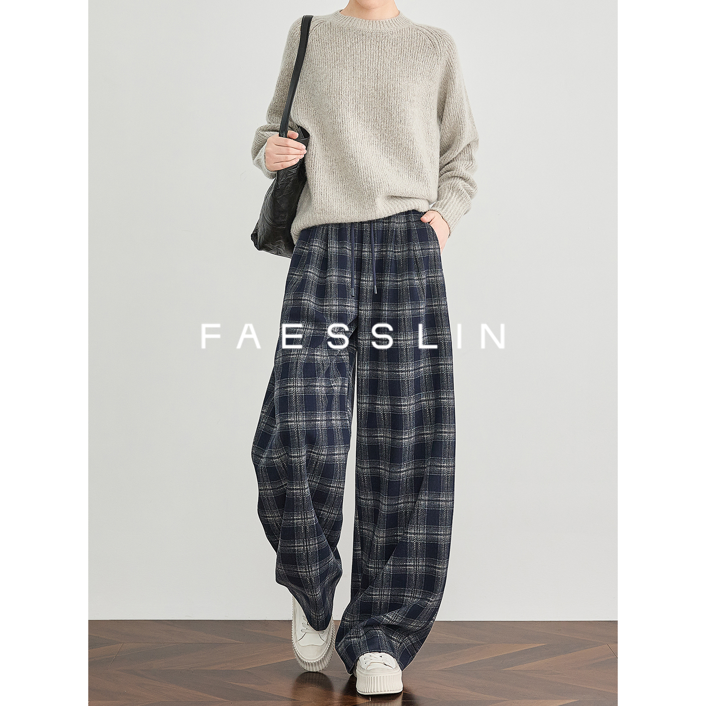 休闲阔腿直筒裤 FAESSLIN 女秋冬新款 复古格子休闲裤 都市休闲范