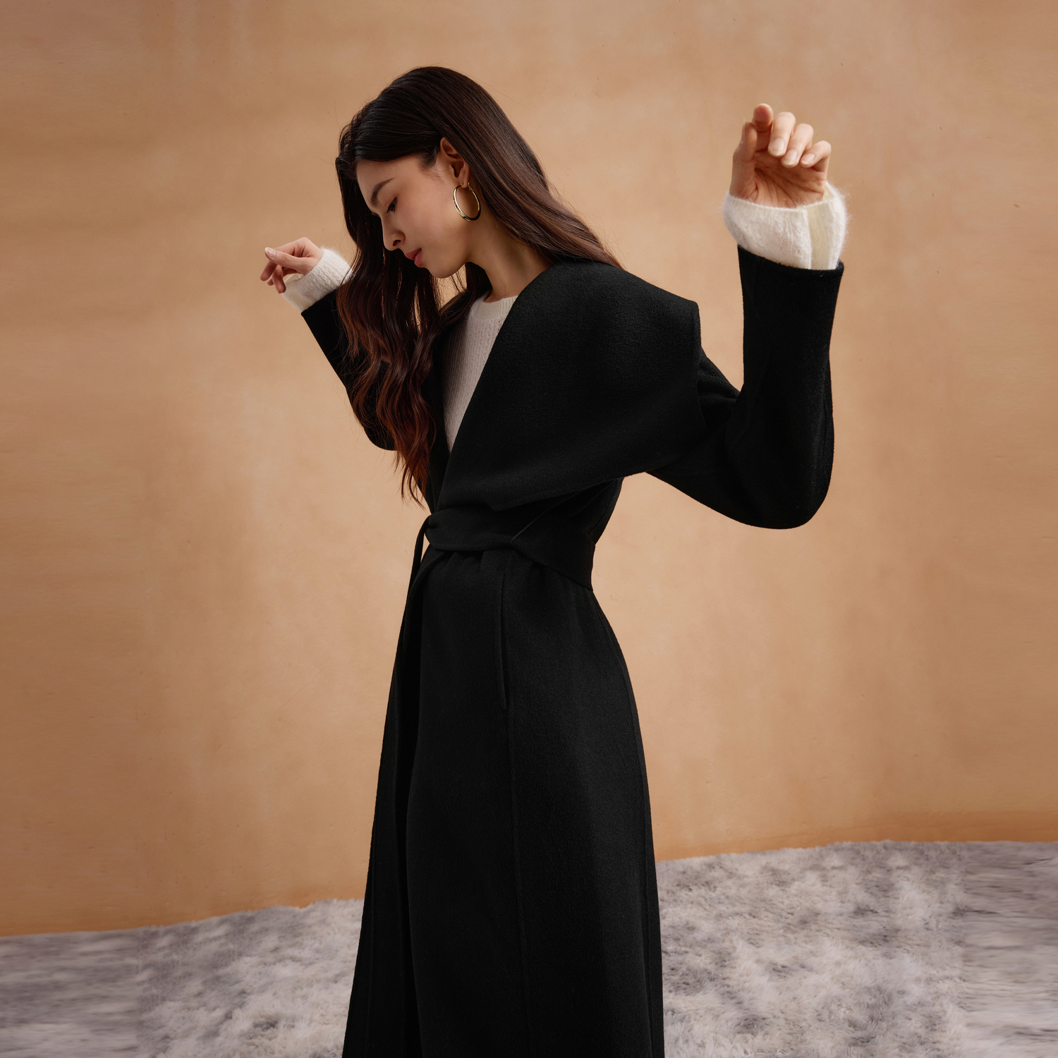 高个子双面呢加长款 高级感毛呢外套 羊绒大衣女2024秋冬过膝加长款