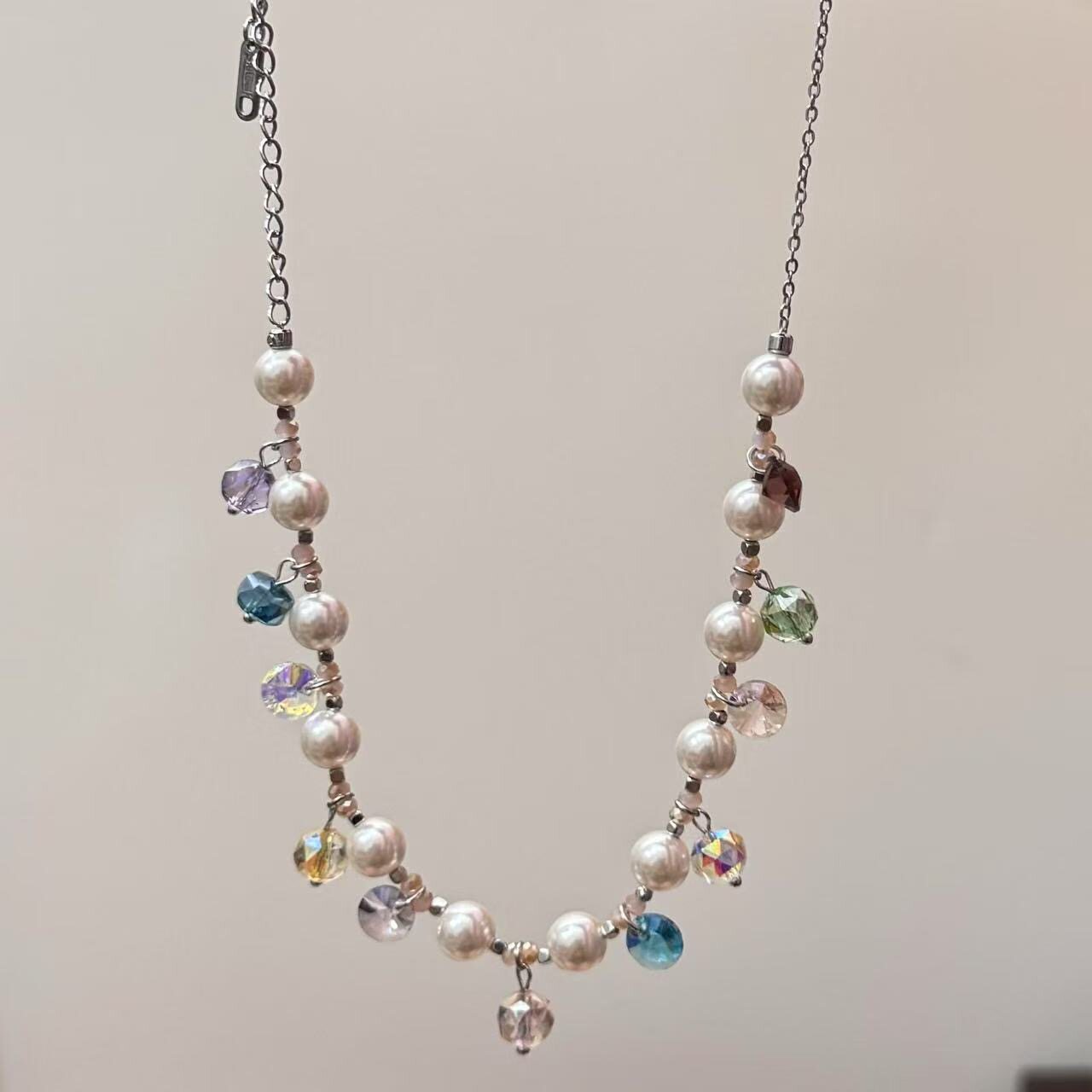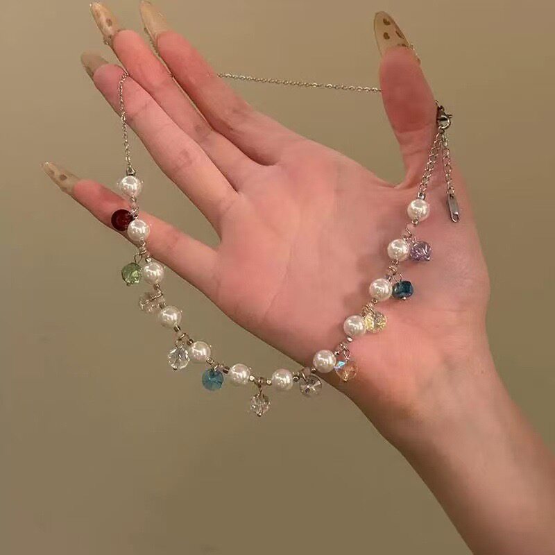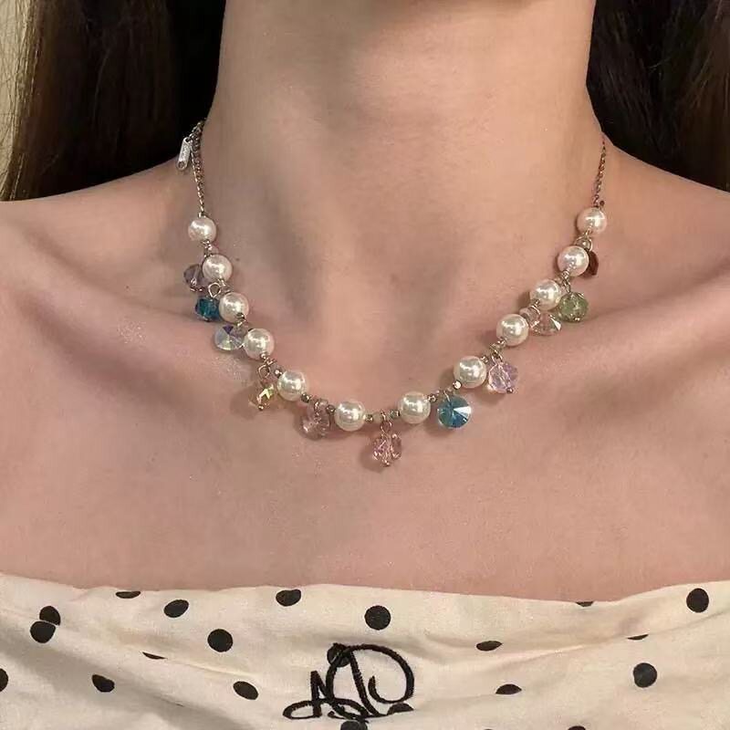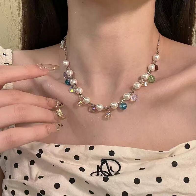 夏日多巴胺彩色水晶珍珠项链女2025年新款 小众甜美设计感锁骨链