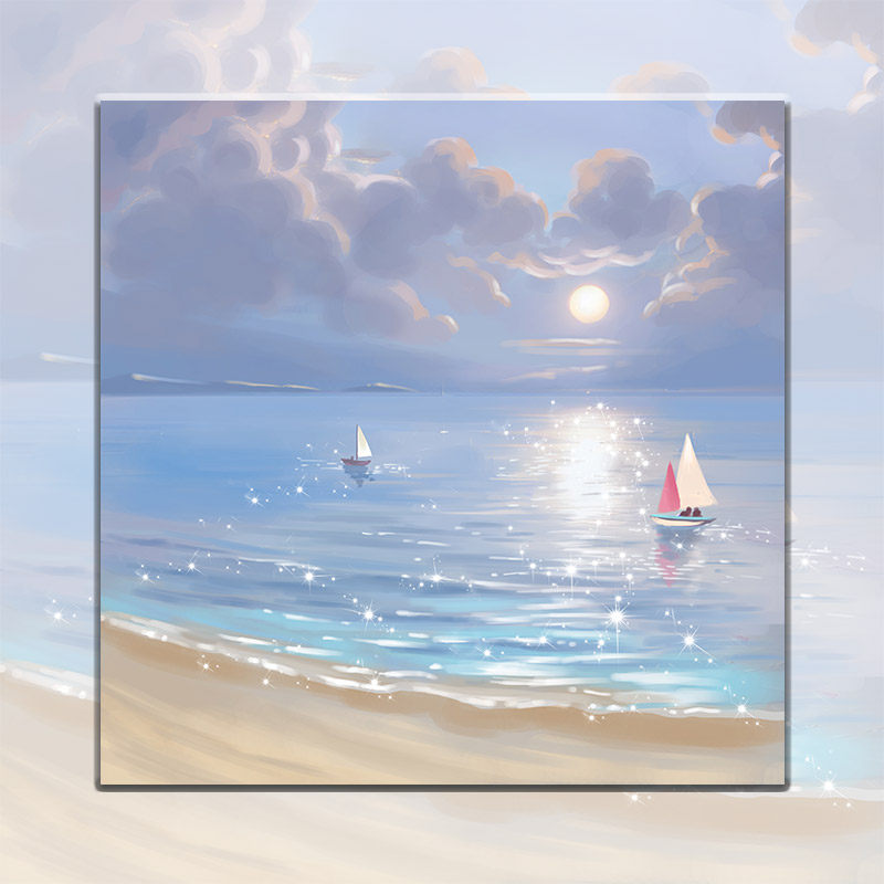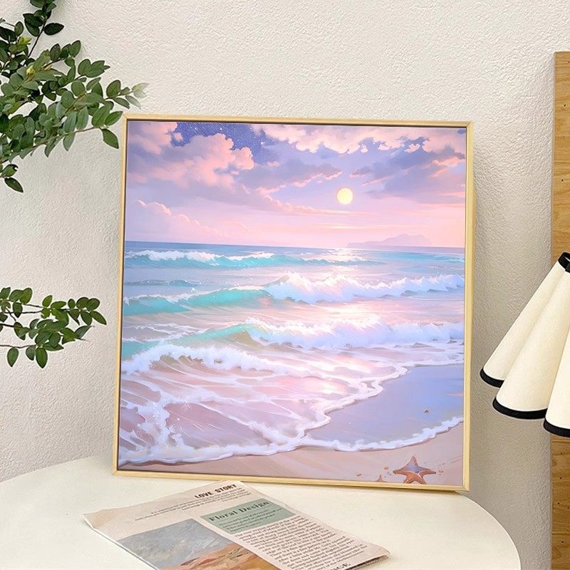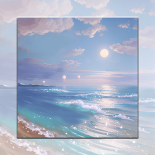 方形粉色大海滩装 饰画成品仿油画风景唯美治愈梦幻卧室客厅摆挂画