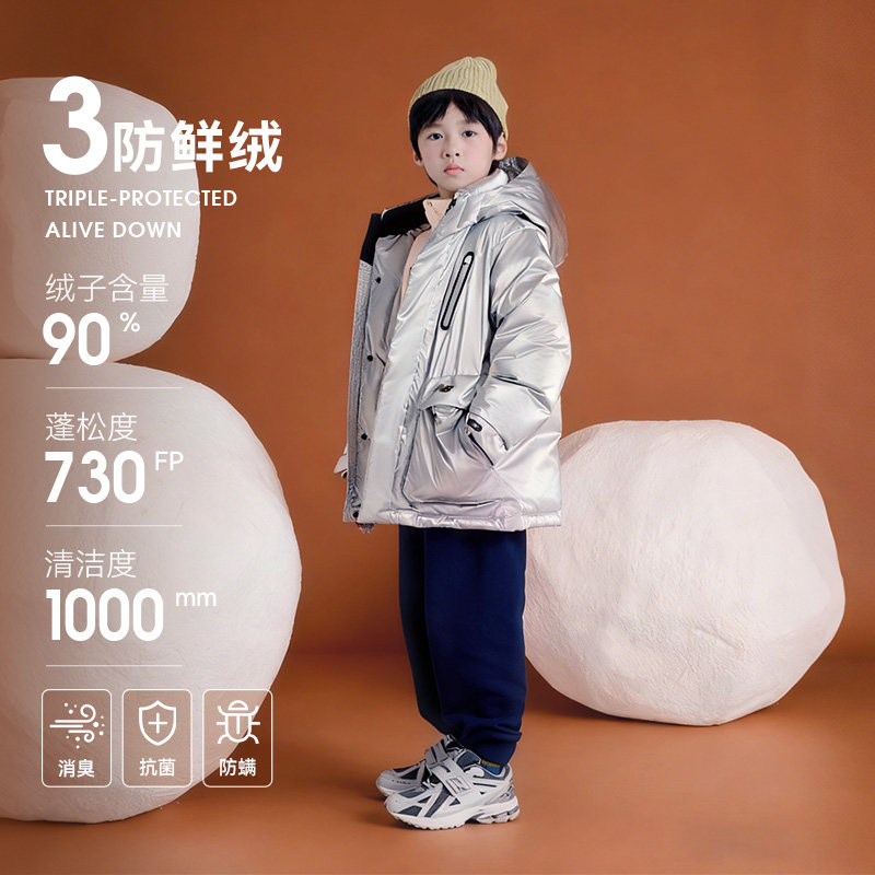 90%绒子含量 中长款 nb官方童装 新品 保暖鸭绒连帽羽绒服 冬季