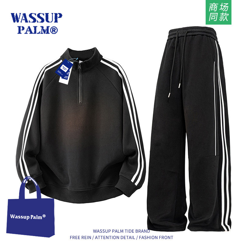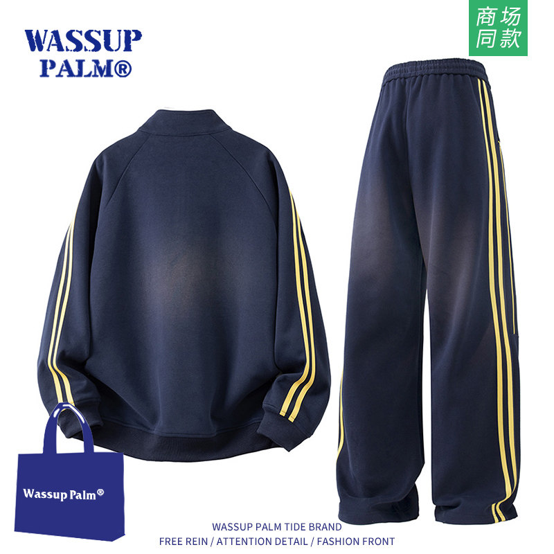 春秋立领条纹卫衣长裤 WASSUP 2025新款 男款 两件套 PALM运动服套装