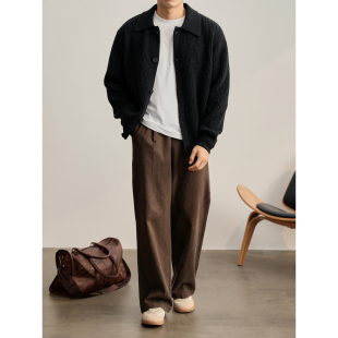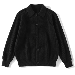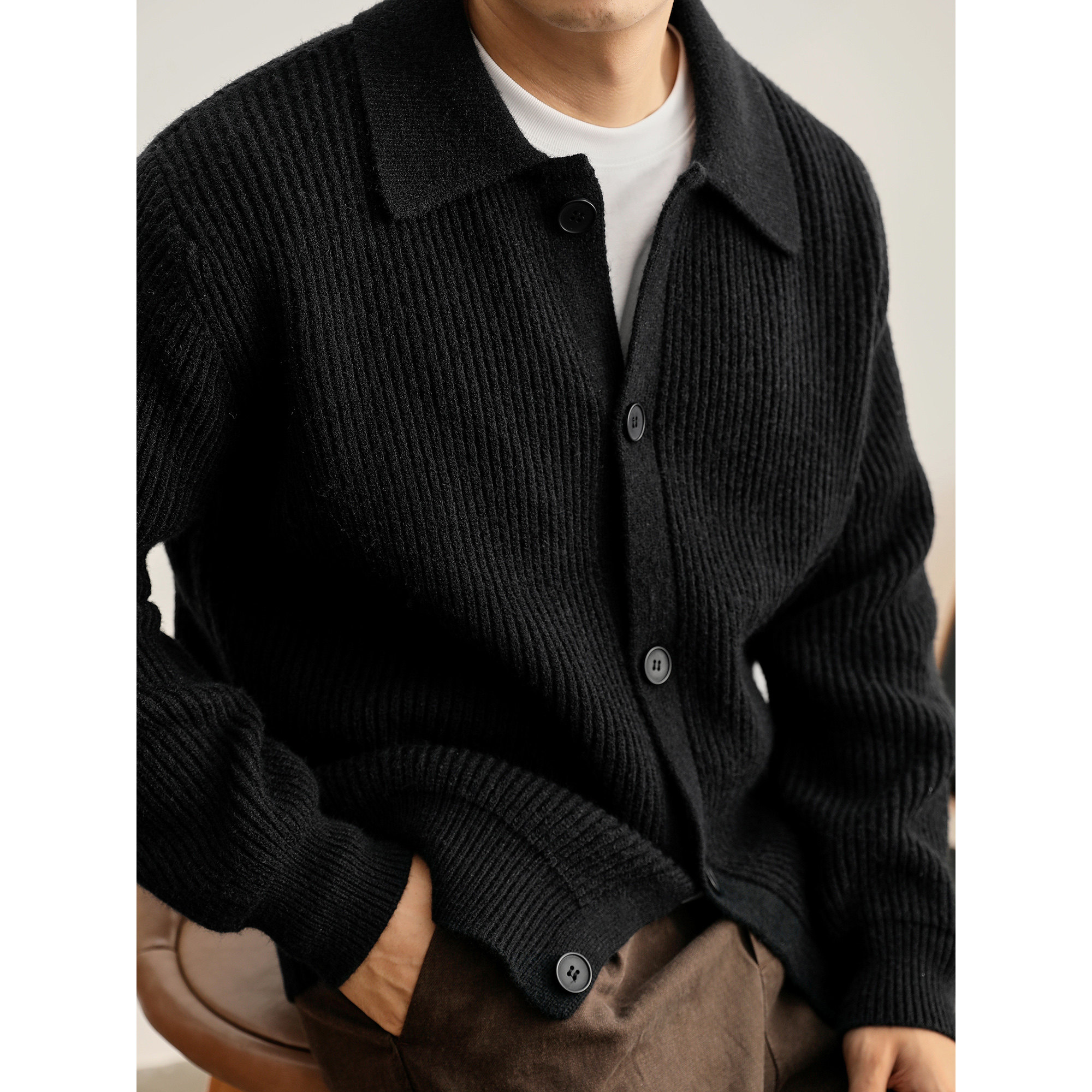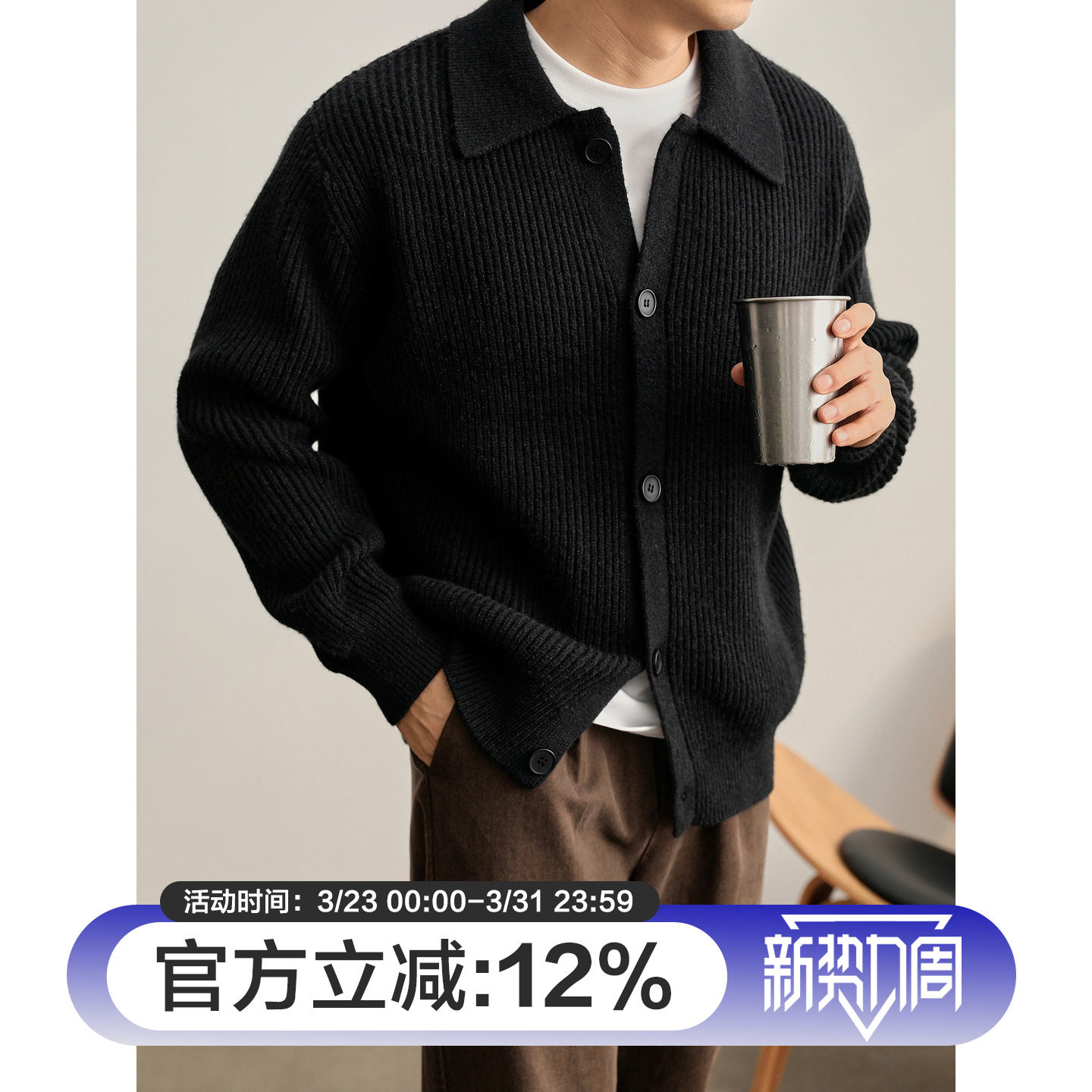 LUUD 毛衣秋冬保暖翻领针织外套 韩系极简风竖条纹理感单排扣开衫